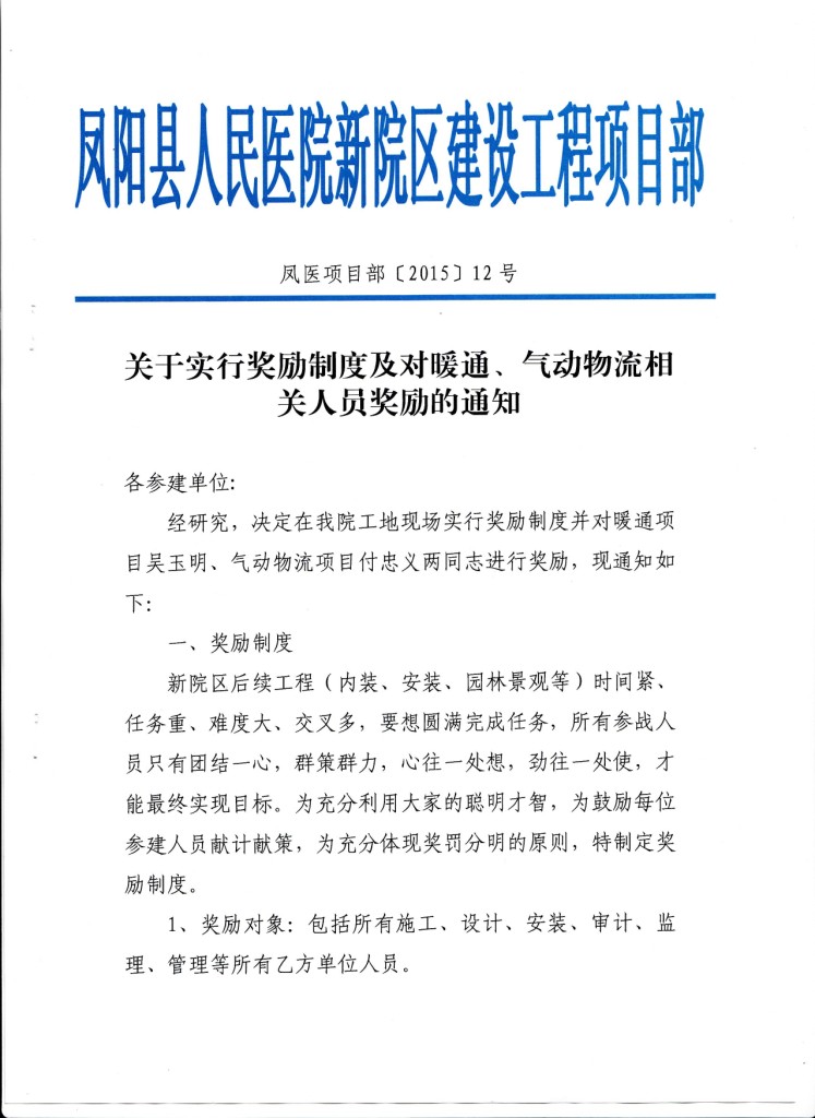 8月11日,鳳陽縣人民醫(yī)院新院區(qū)建設工程項目部發(fā)來賀文,就公司第九分公司承攬的鳳陽縣人民醫(yī)院新院區(qū)暖通項目安裝工程表示肯定,并對該項目的現(xiàn)場負責人吳玉明同志給予表彰和獎勵通報。
