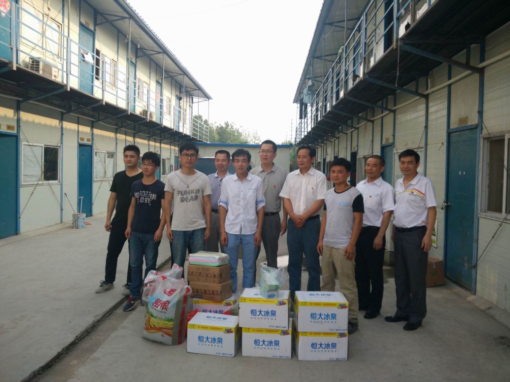 日下午,正值高溫,集團公司黨委副書記牛曙東,在黨委工作部主任徐文聯(lián)的陪同下,深入公司承建的皖北藥業(yè)二期工程,看望慰問在高溫酷署中仍堅守一線辛苦工作的職工們,為他們送上了綠豆、飲料、茶葉、白糖等防暑降溫物品,也為這個炎炎夏日增添了絲絲清涼。