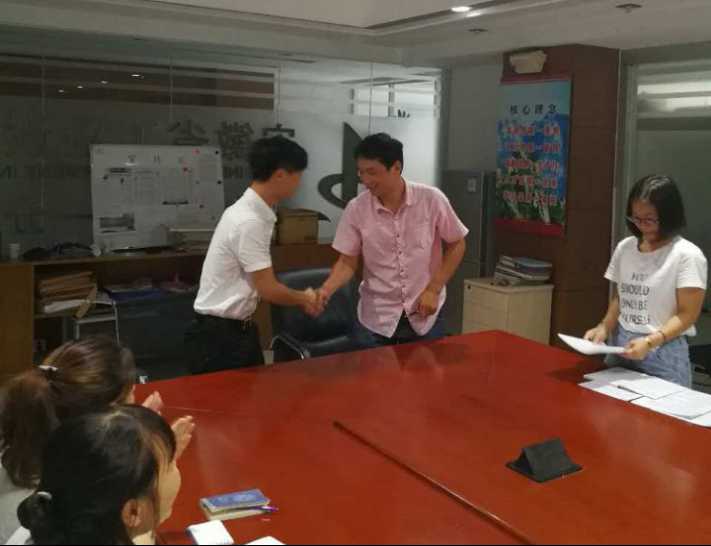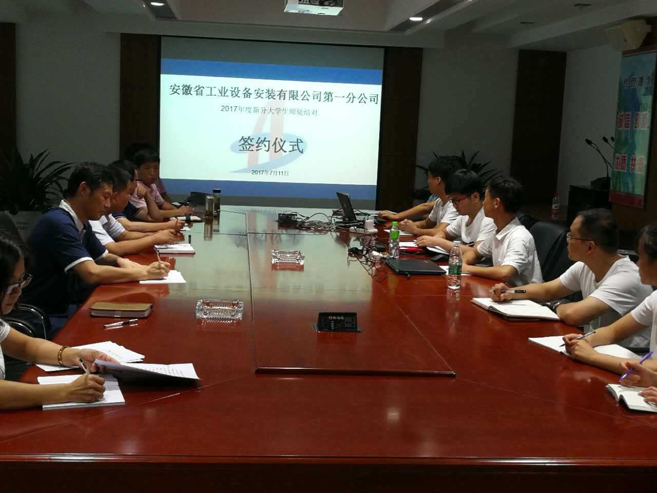 第一分公司2017年新入職員工已完成輪崗實習(xí)培訓(xùn),即將步入定崗實習(xí)階段。為了充分發(fā)揮技術(shù)骨干人才的“傳、幫、帶”作用,加強對新人的技術(shù)、技能培養(yǎng),7月11日下午,一分公司舉行了師徒協(xié)議簽訂儀式。