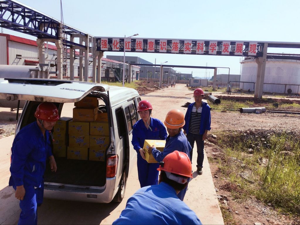 時(shí)值夏季,烈日炎炎,酷熱難耐。奮戰(zhàn)在一線員工們的身體健康狀況牽動(dòng)著公司領(lǐng)導(dǎo)的心。7月17日下午,安慶分公司經(jīng)理史崇松,黨支部書記劉紅艷深入一線,看望慰問奮戰(zhàn)在一線的施工人員,并帶上了清涼解暑的飲品,為他們?cè)谘谉岬南募舅腿チ艘环萸鍥觥?/DIV>