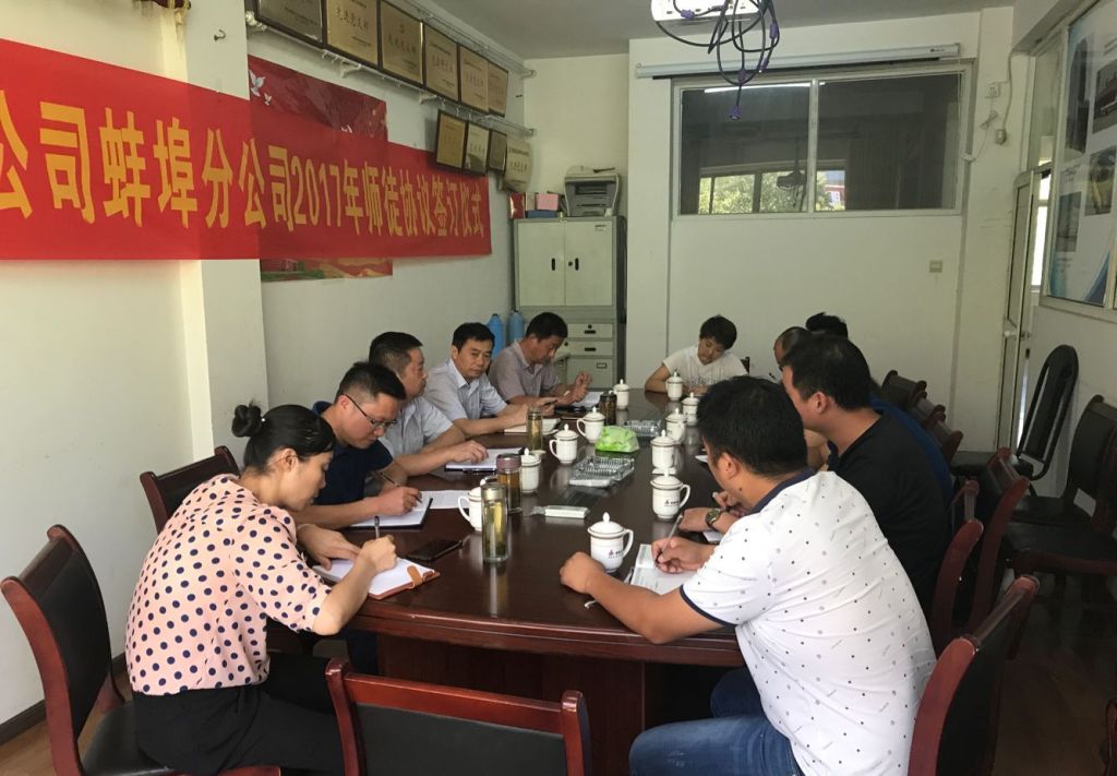 烈日當(dāng)空,酷熱難忍。7月21日下午,公司董事長、總經(jīng)理王軍邦,在紀(jì)委書記、工會(huì)主席李寬旭陪同下蒞臨蚌埠分公司調(diào)研指導(dǎo)工作。分公司領(lǐng)導(dǎo)班子及相關(guān)部門負(fù)責(zé)人參加了會(huì)議。會(huì)議由李寬旭主持。