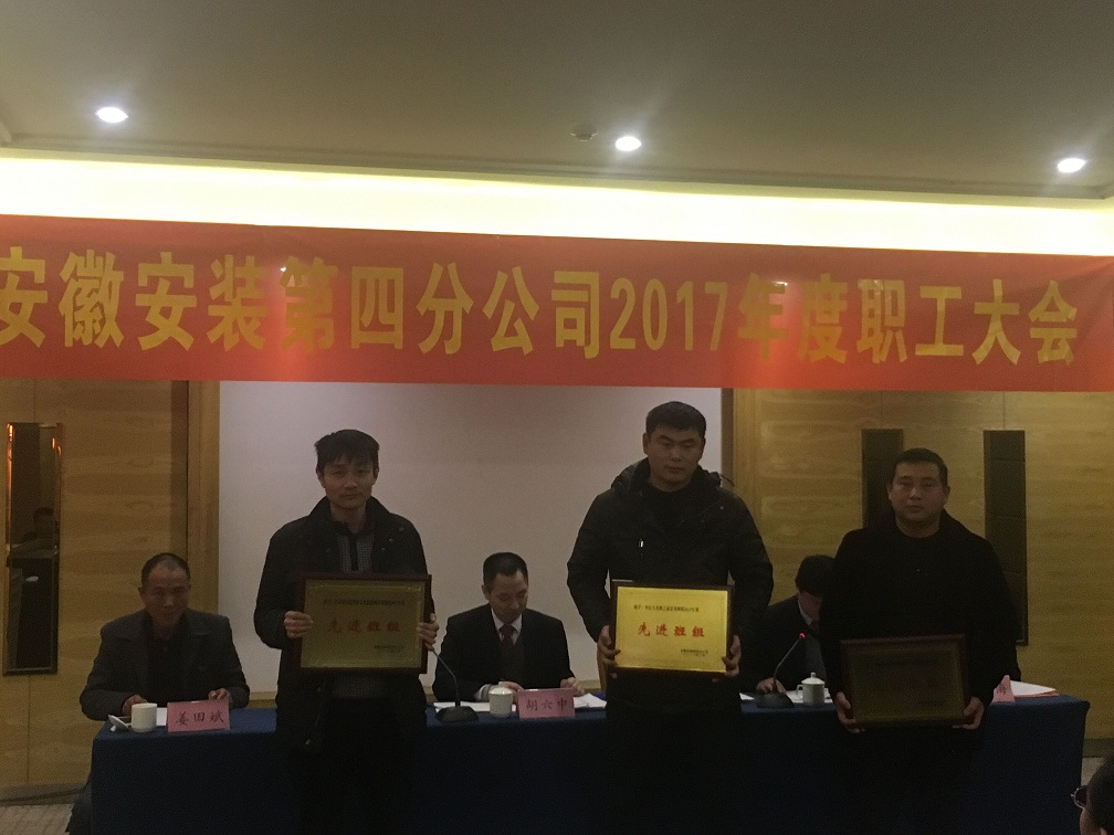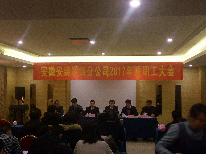 2018年2月1日上午,安徽安裝第四分公司召開2017年度職工大會(huì)。公司黨委書記、副總經(jīng)理胡六中,紀(jì)委書記、工會(huì)主席李寬旭應(yīng)邀出席了大會(huì)。