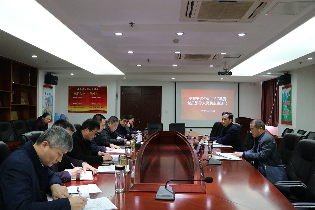 2月26日,安徽安裝公司召開2017年度黨員領導人員民主生活會。集團公司黨委副書記牛曙東、黨委工作部主任徐文聯(lián)到會指導。會議由公司黨委書記、副總經(jīng)理胡六中主持,公司領導班子成員參加會議。