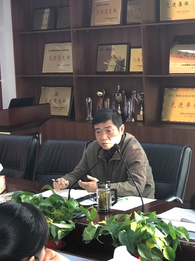 3月16日下午,蚌埠分公司黨支部召開了2017年度專題組織生活會暨民主評議黨員大會,會議由分公司黨支部書記洪軍主持。公司副總經(jīng)理劉安俊、公司黨委辦公室楊俊輝以及分公司全體黨員參加會議。