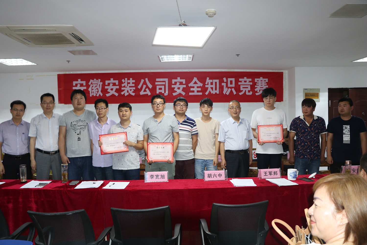 本次活動由各分公司、直屬項目部和機關各代表隊參加,現場氣氛熱烈、高潮迭起,知識競賽題型新穎、形式多樣、知識性與趣味性并重。在難度較大的風險題環(huán)節(jié),選手們紛紛表現出了高昂的斗志和團結協(xié)作的精神面貌。精心設置的搶答題環(huán)節(jié),使得現場的氣氛幾度達到高潮。最終,安慶代表隊奪得桂冠,機關一隊和機關三隊代表隊獲得“二等獎”,蚌埠分公司、機關二隊和四分公司代表隊獲得“三等獎”。賽后,公司領導為獲獎選手頒發(fā)證書、合影留念。