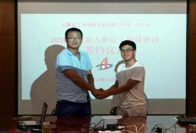 為加快推進(jìn)公司人才隊伍建設(shè),滿足公司可持續(xù)健康發(fā)展需要,安徽安裝公司規(guī)范用才機制,加大人才培養(yǎng)力度。近日,公司組織新入職員工進(jìn)行師徒結(jié)對,簽訂師徒協(xié)議,安排有經(jīng)驗的管理人員做好“傳幫帶”,幫助新員工盡快地適應(yīng)企業(yè)、熟悉工作,掌握崗位技能,盡快成長成熟。