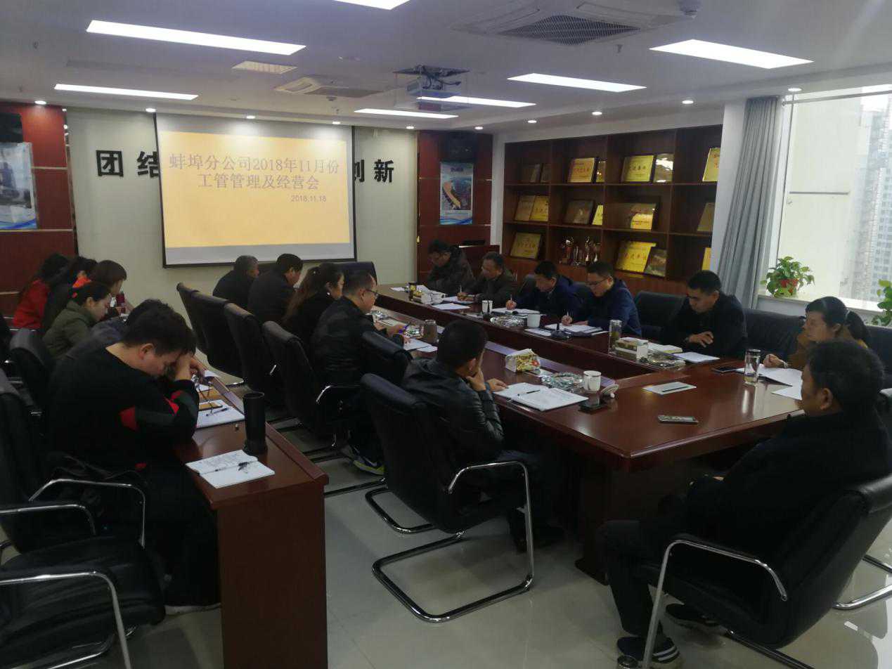 2018年11月18日下午,在蚌埠分公司會議室召開11月份工程管理及經(jīng)營工作會議。分公司領導班子成員、機關各部門負責人及項目經(jīng)理、聯(lián)營合作單位負責人參加會議,會議由分公司副經(jīng)理張漢軍主持。