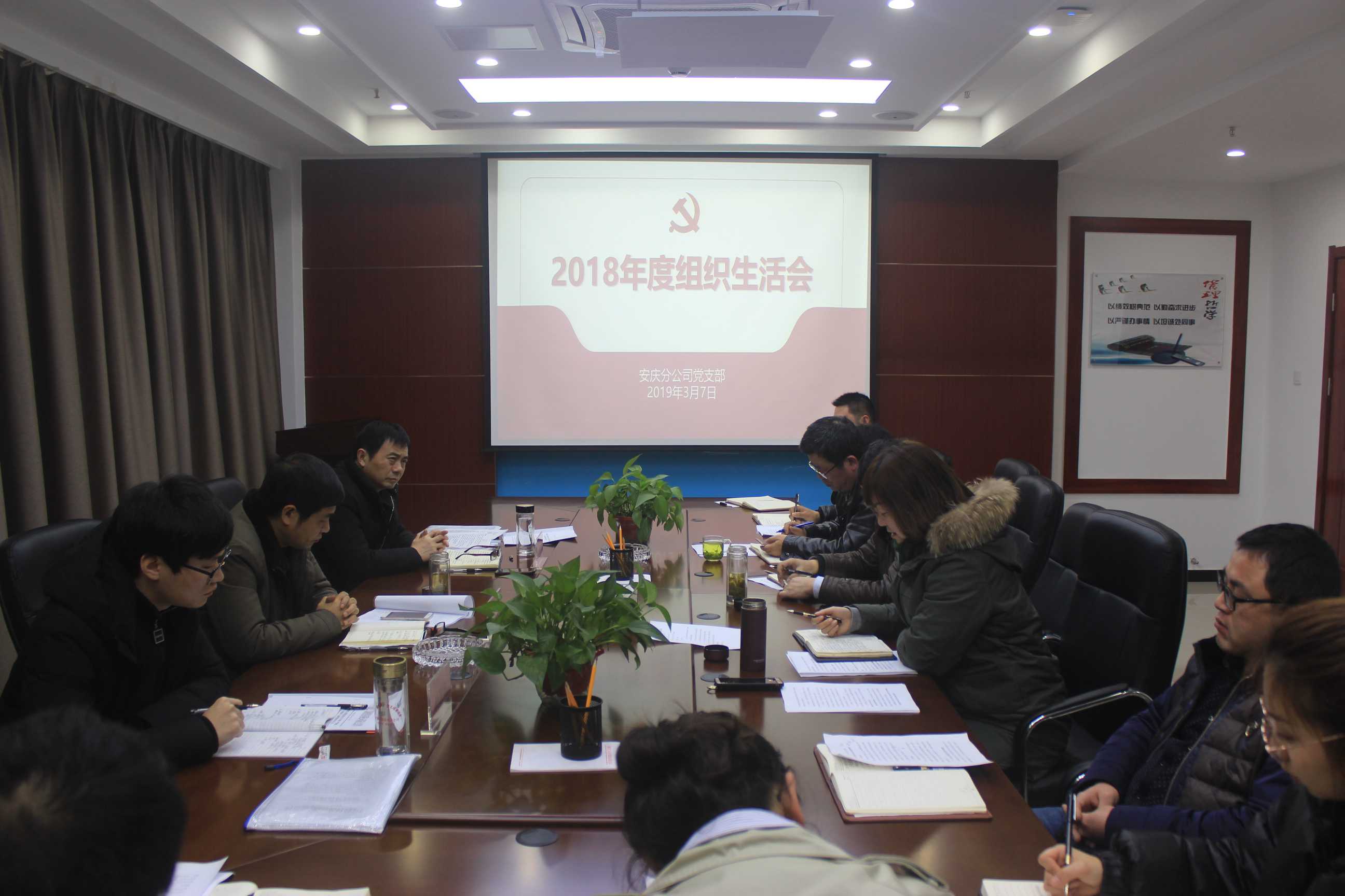 3月7日下午,安慶分公司黨支部組織全體黨員召開了2018年度組織生活會,公司副總經(jīng)理劉安俊,紀委書記、工會主席李寬旭和公司黨委辦公室人員應邀參加會議。會議由分公司黨支部書記劉紅艷主持。