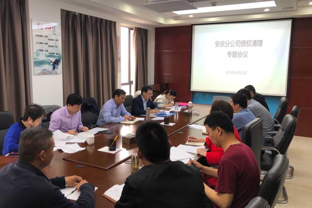 2019年4月23日,公司副總經(jīng)理高飛在財(cái)務(wù)部經(jīng)理許素寒、紀(jì)檢監(jiān)察室主任王偉、工程管理部副經(jīng)理龍海建等人的陪同下蒞臨安慶分公司,召開債權(quán)清理專題會議。