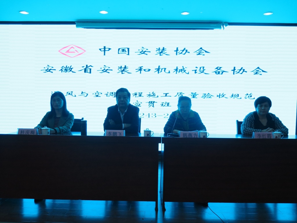2017年11月10日,由中國安裝協(xié)會主辦,安徽省安裝和機械設(shè)備協(xié)會承辦的《通風(fēng)與空調(diào)工程施工質(zhì)量驗收規(guī)范》(GB50243-2016)宣貫班在安徽合肥成功舉辦。這是中國安裝協(xié)會與安徽省安裝和機械設(shè)備協(xié)會首次合作開展培訓(xùn)。來自北京、山西、江蘇和我會會員單位負責(zé)人、技術(shù)負責(zé)人、工程師等相關(guān)人員200多人參會。安徽省安裝和機械設(shè)備協(xié)會副會長李鵬飛作了開班動員,中國安裝協(xié)會培訓(xùn)班主任韓燕力提出基本要求。