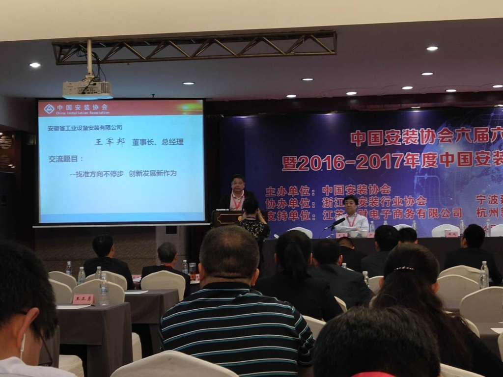 會議進行了企業(yè)先進管理經(jīng)驗交流,邀請了部分企業(yè)領(lǐng)導(dǎo)及行業(yè)專家,圍繞“安裝企業(yè)創(chuàng)新與發(fā)展”主題進行演講。安徽省安裝和機械設(shè)備協(xié)會會長,安徽省工業(yè)設(shè)備安裝有限公司董事長、總經(jīng)理王軍邦應(yīng)邀代表安徽省協(xié)會,發(fā)表了題為“找準方向不停步,創(chuàng)新發(fā)展新作為”的精彩演講。引起了與會者的強烈共鳴,并贏得陣陣掌聲。各省代表們緊密結(jié)合黨的十九大中提出的“堅持新發(fā)展理念”及“創(chuàng)新是引領(lǐng)發(fā)展的第一動力”的戰(zhàn)略思想,結(jié)合企業(yè)科技創(chuàng)新、人才培養(yǎng)、經(jīng)營管理方面的實際問題,分享本企業(yè)的先進做法與寶貴經(jīng)驗,圍繞“安裝企業(yè)創(chuàng)新與發(fā)展”這一核心議題進行演講,給與會者留下深刻印象。
