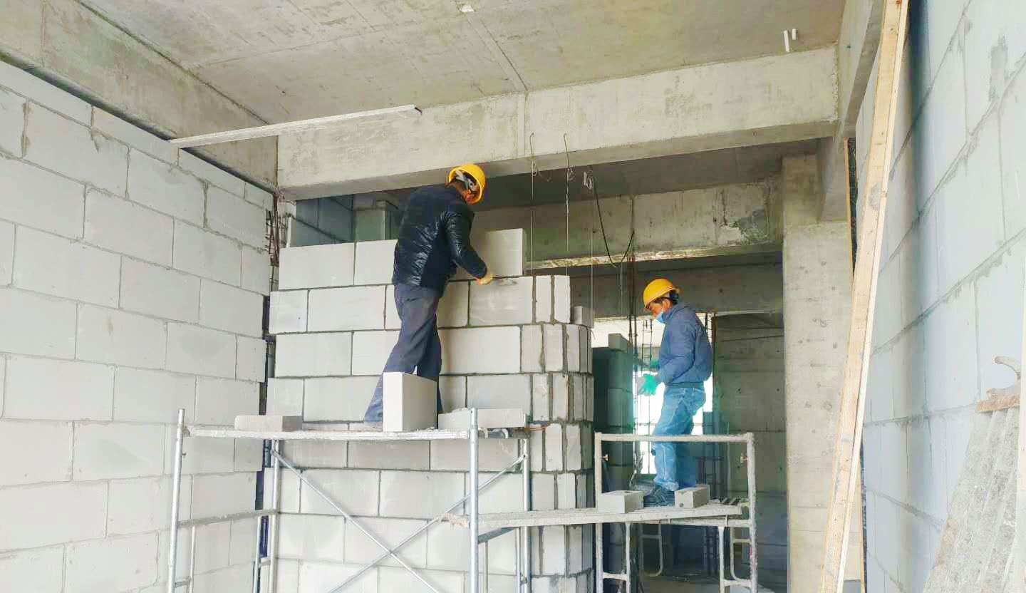 目前,項(xiàng)目管理人員25人,木工、鋼筋工、架子工共128人已進(jìn)場,醫(yī)技樓14層頂板鋼筋綁扎、支模正在進(jìn)行施工;門診樓3—8層正在砌墻。