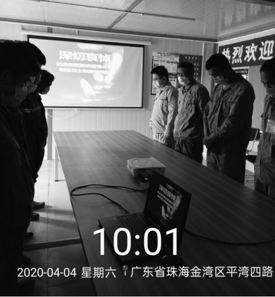 西北分公司珠海利安隆項(xiàng)目部舉行默哀儀式,哀悼為抗擊疫情斗爭(zhēng)犧牲烈士和逝世同胞