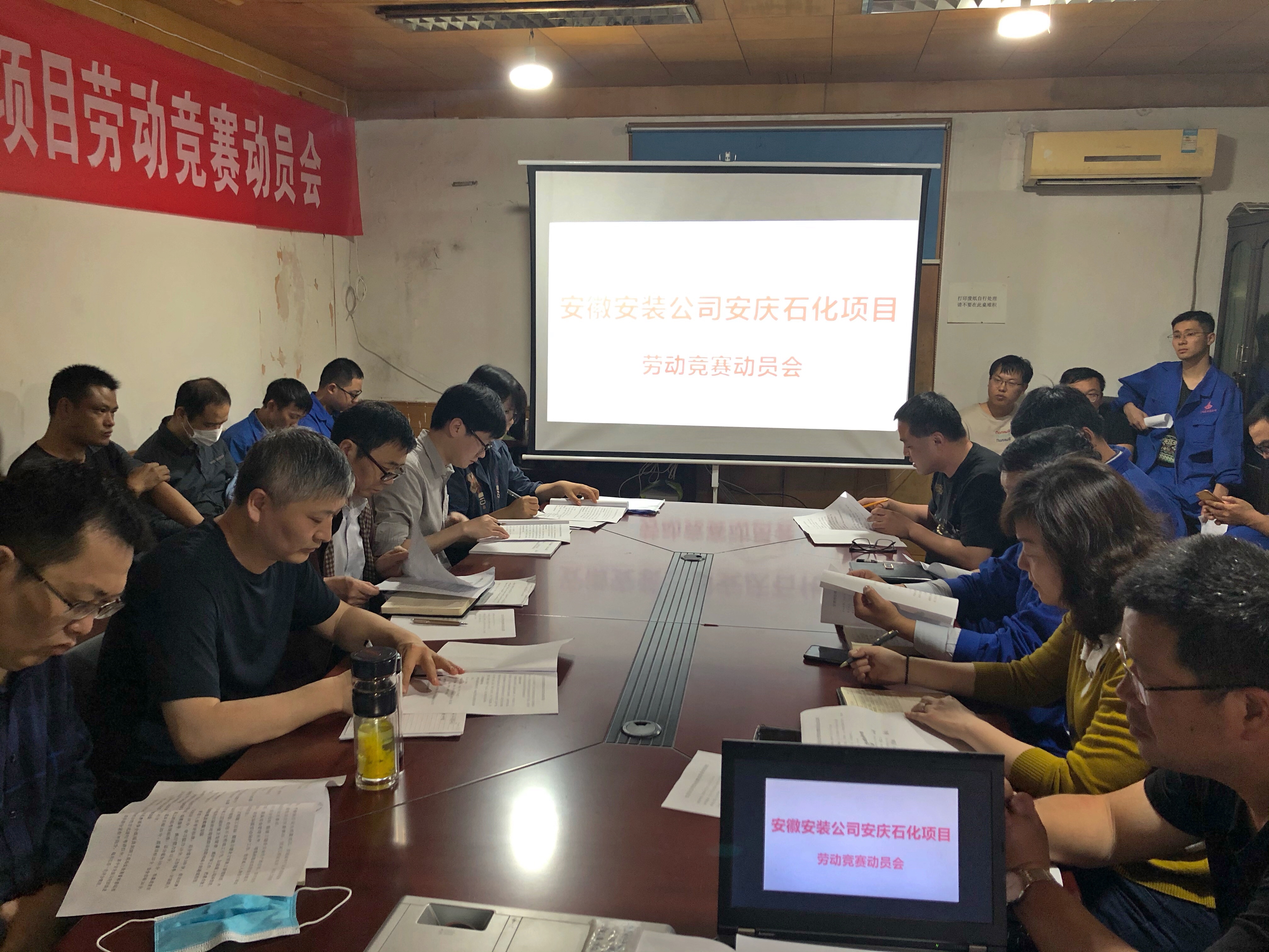 為了充分調(diào)動廣大職工的積極性和創(chuàng)造性,全面完成安慶石化框架協(xié)議項目生產(chǎn)任務(wù),把疫情損失奪回來,安徽安裝開展以“抗疫情、促進度、穩(wěn)預(yù)期、保增長”為主題的勞動競賽。5月7日下午,公司紀委書記、工會主席李寬旭、總工程師吳繼成等相關(guān)領(lǐng)導(dǎo),安慶分公司領(lǐng)導(dǎo)班子成員、項目管理人員和施工班組長共40多人參加了“安慶石化框架協(xié)議項目”勞動競賽動員會。