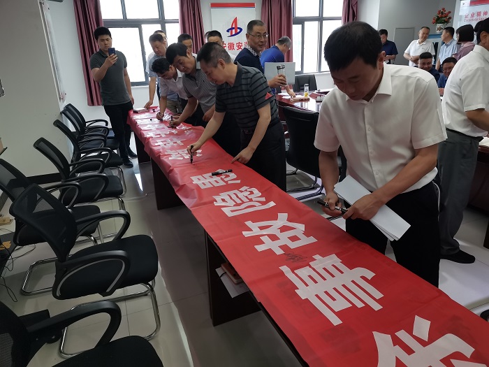隨后全體參會人員在副總經(jīng)理高飛的帶領(lǐng)下進(jìn)行了安全宣誓,并在主題橫幅上鄭重簽名,做出莊嚴(yán)的安全承諾。下一步,公司將積極開展安全教育培訓(xùn)、安全知識競賽、隱患排查治理等一系列活動,進(jìn)一步增強(qiáng)全員安全意識,提高全員安全素質(zhì),促進(jìn)公司安全生產(chǎn)水平進(jìn)一步提升和安全生產(chǎn)形勢持續(xù)穩(wěn)定好轉(zhuǎn),為公司健康發(fā)展?fàn)I造良好的安全環(huán)境。