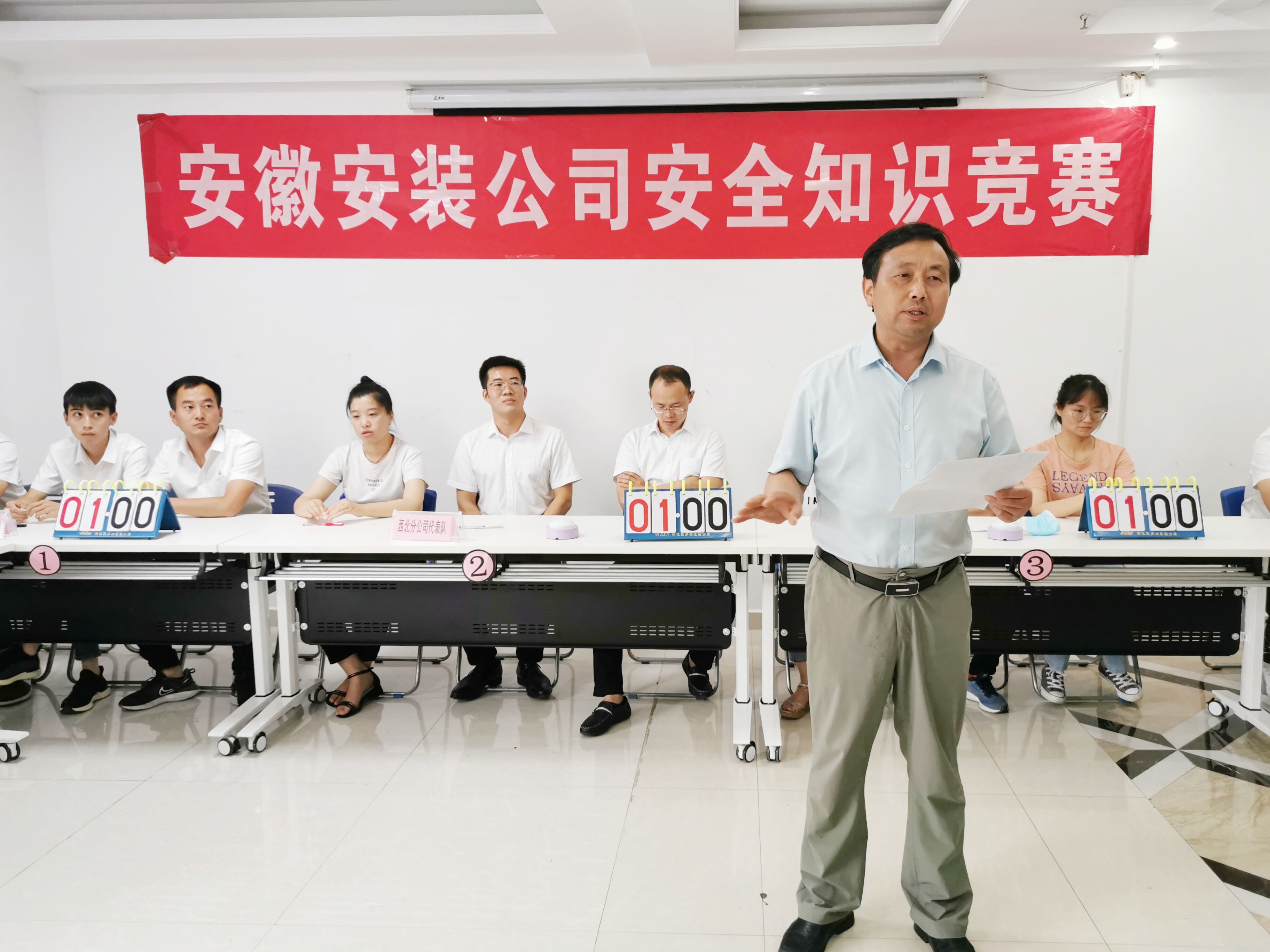 為切實(shí)開展2020年全國第十九個(gè)“安全生產(chǎn)月”活動(dòng),進(jìn)一步提高全員安全意識(shí)與知識(shí)水平,普及疫情防控相關(guān)知識(shí),6月11日下午,安徽安裝公司舉辦安全生產(chǎn)知識(shí)競賽。公司黨委書記、董事長胡六中,副總經(jīng)理高飛,紀(jì)委書記、工會(huì)主席李寬旭,副總經(jīng)理李原,總工程師吳繼成應(yīng)邀出席。