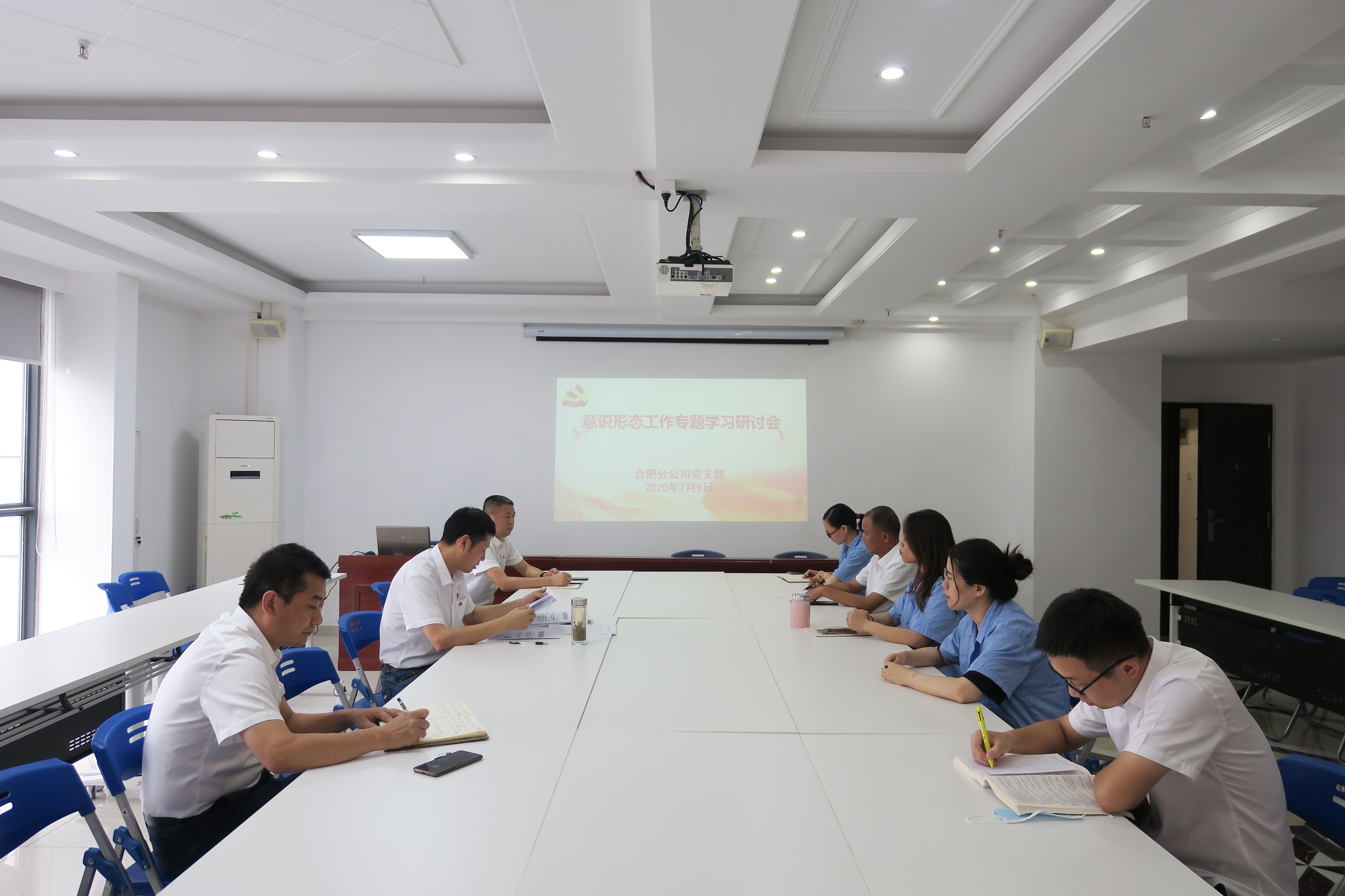 為進(jìn)一步加強(qiáng)和改進(jìn)意識形態(tài)工作,落實(shí)黨管意識形態(tài)原則,7月9日下午,合肥分公司黨支部組織開展意識形態(tài)工作專題學(xué)習(xí)研討會,分公司領(lǐng)導(dǎo)班子成員、支委委員、工會及共青團(tuán)負(fù)責(zé)同志參會,會議由黨支部書記胡迎東主持。