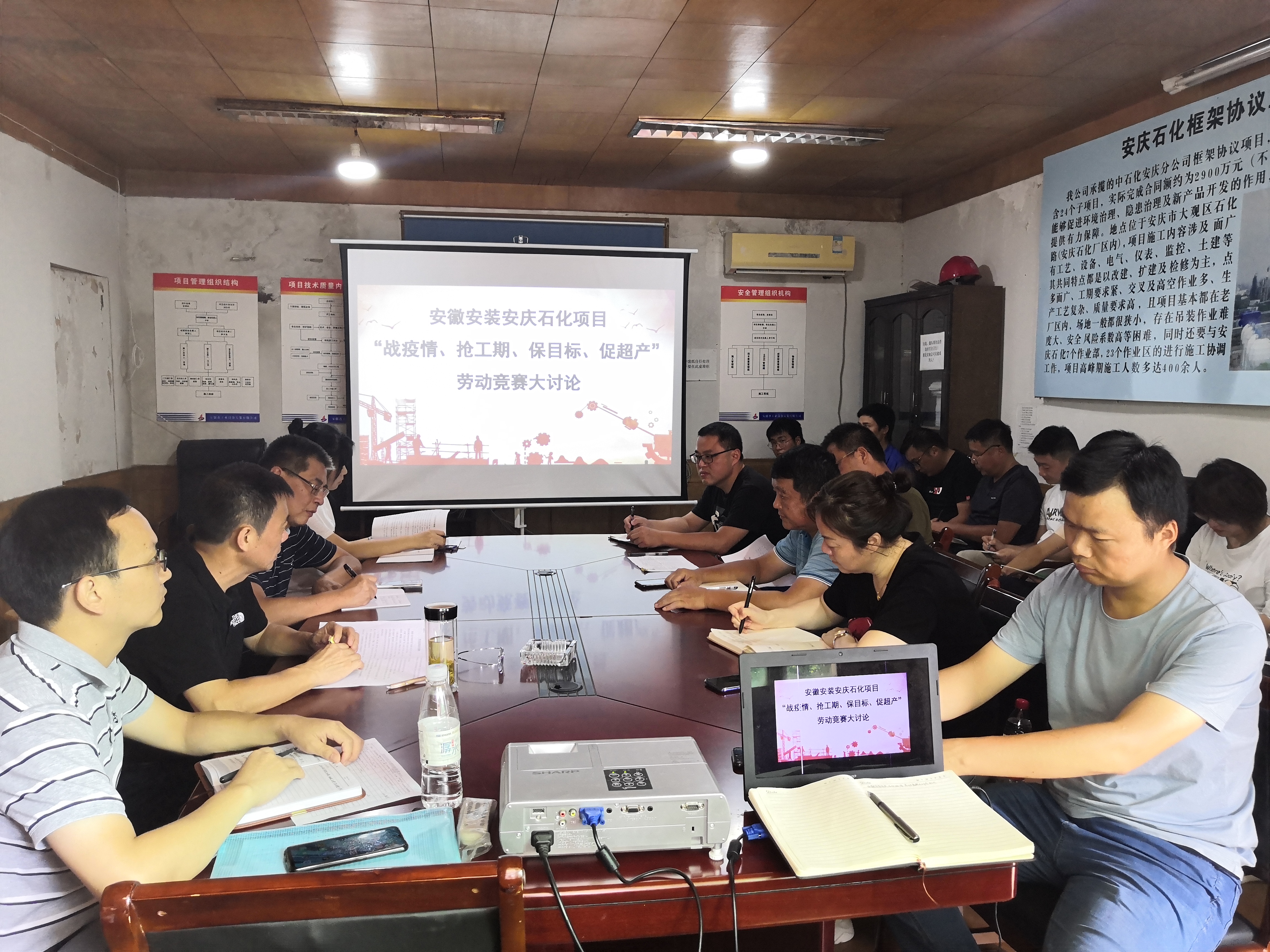 為認真貫徹集團公司“戰(zhàn)疫情、搶工期、保目標、促超產(chǎn)”勞動競賽活動精神,8月20日上午,安徽安裝公司圍繞“不能按時交工為恥辱”的履約意識,在安慶石化項目部會議室組織開展“戰(zhàn)疫情、搶工期、保目標、促超產(chǎn)”主題大討論活動。公司紀委書記、工會主席李寬旭,總會計師張元斌,公司相關部門負責人,安慶分公司領導班子成員,項目經(jīng)理、技術負責人等共20余人參加會議,會議由李寬旭主持。