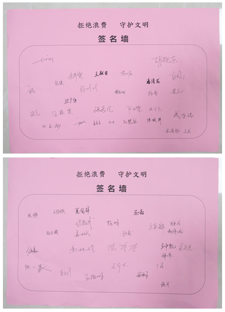 “近日,習(xí)近平總書記對制止餐飲浪費行為作出重要指示,要求切實培養(yǎng)節(jié)約習(xí)慣,在全社會營造浪費可恥、節(jié)約為榮的氛圍。這警示我們要時刻繃緊厲行節(jié)約、反對浪費這根弦,堅決抵制各種浪費現(xiàn)象,自覺從日常的餐飲到辦公浪費做起,努力形成人人節(jié)約、處處節(jié)儉的良好習(xí)慣……”黨支部書記胡迎東在作出活動強調(diào)后,進(jìn)一步宣讀了《“拒絕浪費 守護(hù)文明”倡議書》,并號召廣大黨員職工尤其是黨員干部,要帶頭發(fā)揚中華民族勤儉節(jié)約的傳統(tǒng)美德,自覺提高自身文明素質(zhì),積極做文明的倡導(dǎo)者、引領(lǐng)者和踐行者。隨后,在場的所有人員依次在倡議書上簽字,以表厲行勤儉節(jié)約、反對鋪張浪費的決心。