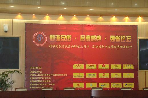 為推進(jìn)品牌強(qiáng)省戰(zhàn)略,加快安徽省品牌的發(fā)展步伐,實現(xiàn)安徽經(jīng)濟(jì)全面和諧發(fā)展,由安徽省商務(wù)廳、安徽省人民政府國有資產(chǎn)監(jiān)督管理委員會、安徽省工商行政管理局、安徽省質(zhì)量技術(shù)監(jiān)督局、安徽省經(jīng)濟(jì)技術(shù)協(xié)作辦公室和安徽省科學(xué)家企業(yè)家協(xié)會聯(lián)合舉辦的“和諧安徽·品牌盛典·強(qiáng)省論壇”活動,于2009年7月28日在省人大會議中心隆重召開。本次論壇以“科學(xué)發(fā)展與優(yōu)秀品牌創(chuàng)立同步,加速崛起與發(fā)展經(jīng)濟(jì)強(qiáng)省同行”為主題。公司總經(jīng)理王軍邦先生應(yīng)邀參加論壇活動。