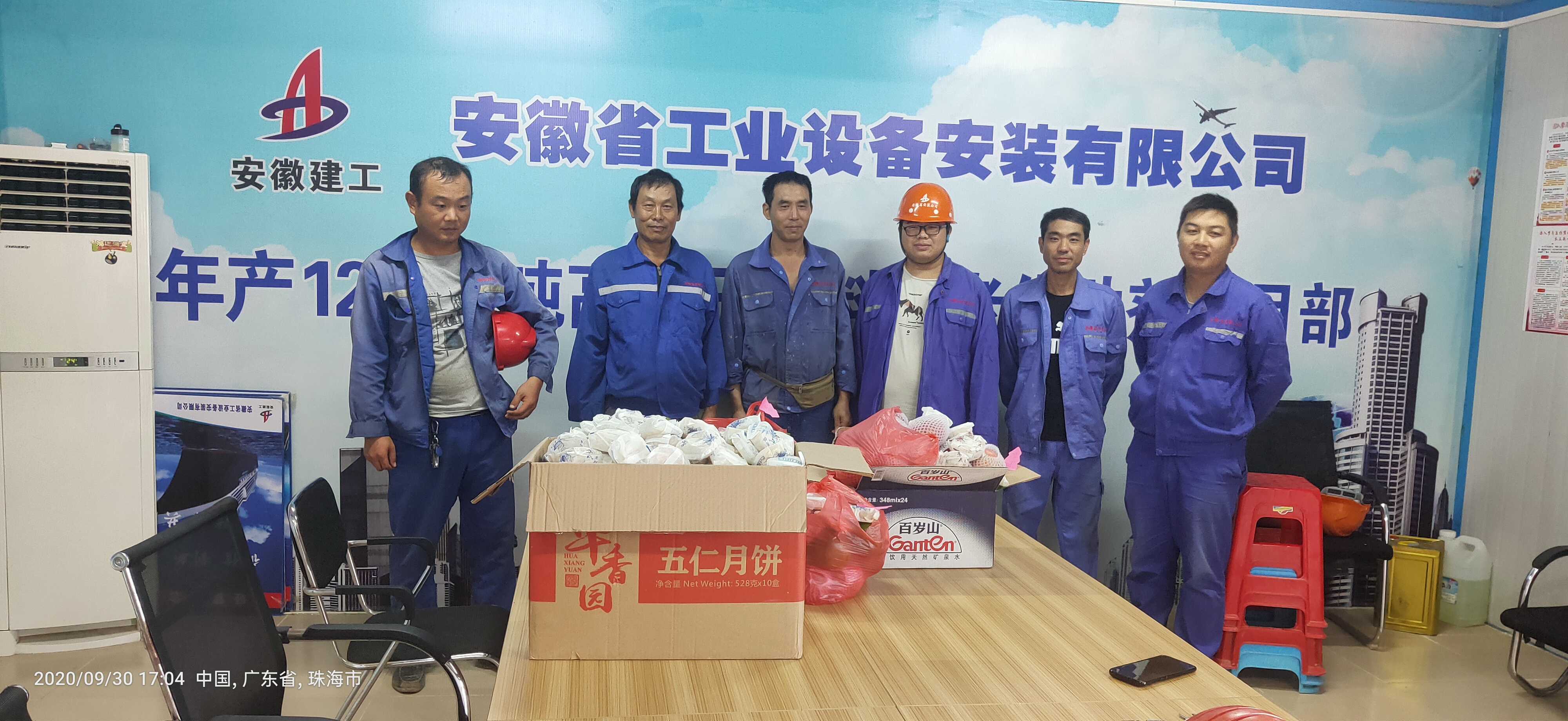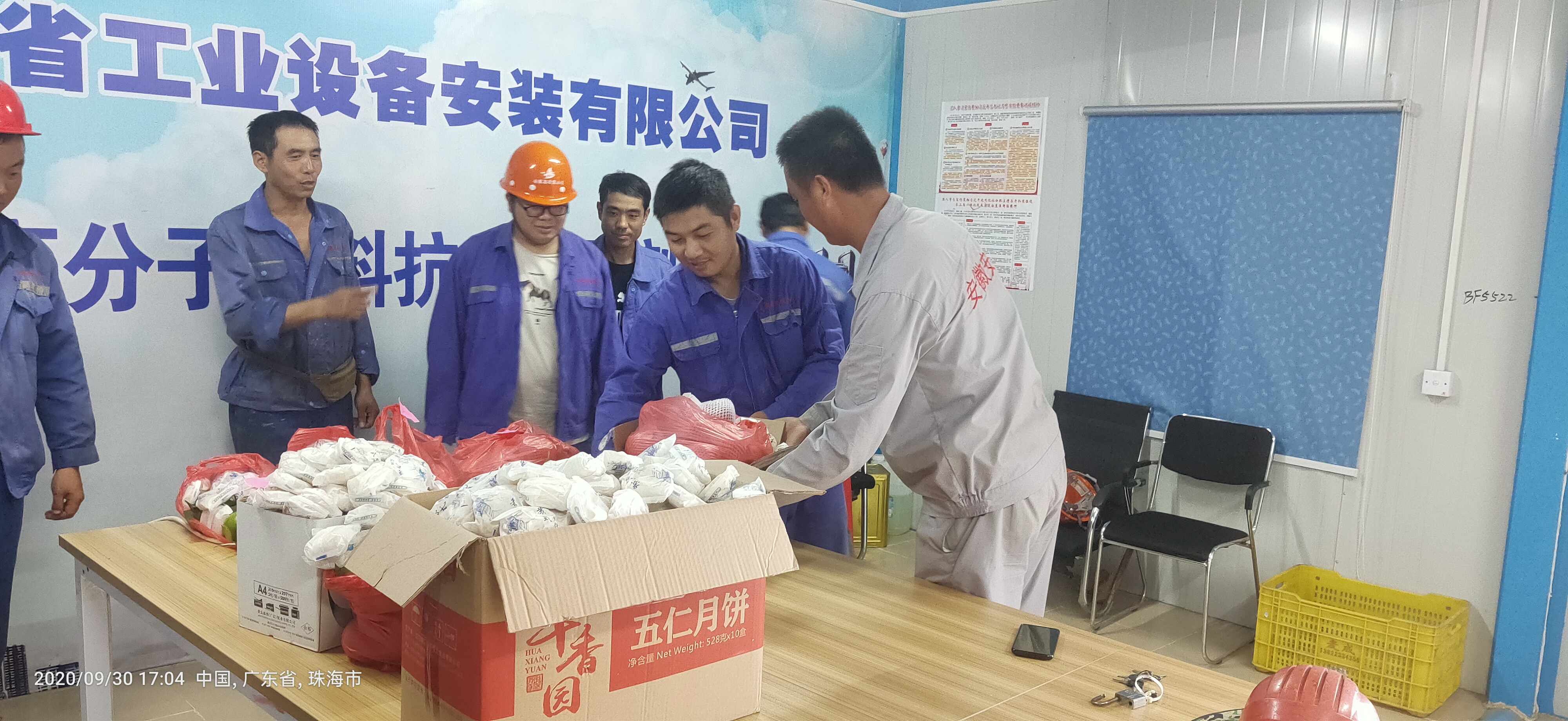 9月30日,在2020年中秋節(jié)國慶節(jié)“雙節(jié)”來臨之際,西北分公司珠海利安隆項目部組織開展了“雙節(jié)”送溫暖活動——為仍奮斗在一線項目建設(shè)者們送上了一份節(jié)日的祝福。