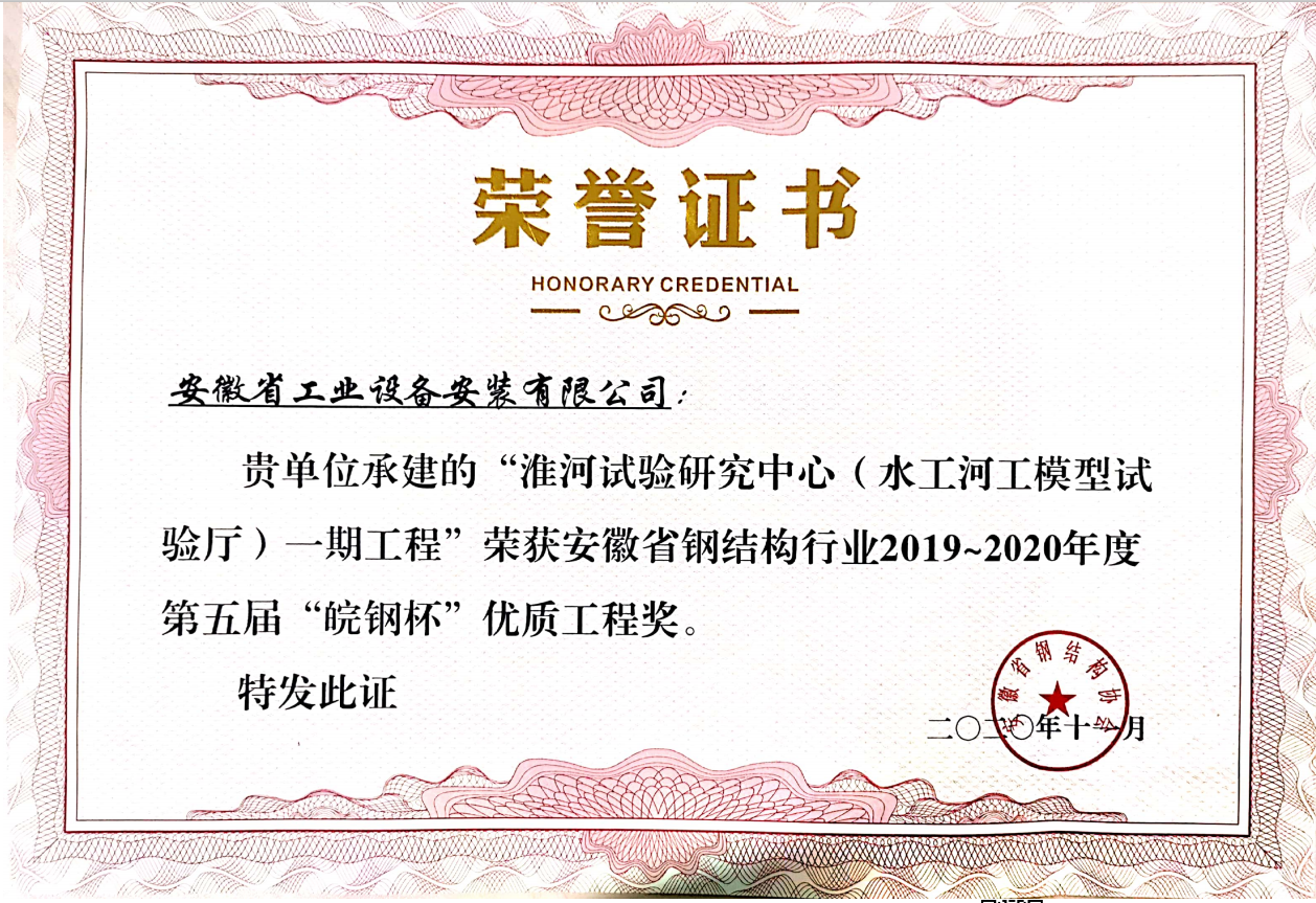 近日,以“聚焦十四五,展望鋼結(jié)構(gòu)”為主題的安徽省鋼結(jié)構(gòu)協(xié)會(huì)三屆二次會(huì)員代表大會(huì)暨學(xué)術(shù)交流會(huì)公布了“皖鋼杯”獲獎(jiǎng)名單,安徽安裝公司承建的淮河試驗(yàn)研究中心(水工河工模型試驗(yàn)廳)一期工程榮獲“皖鋼杯”優(yōu)質(zhì)工程獎(jiǎng),公司黨委書記、董事長胡六中榮獲安徽省鋼結(jié)構(gòu)行業(yè)優(yōu)秀企業(yè)家,蚌埠分公司副經(jīng)理、淮河試驗(yàn)研究中心一期工程項(xiàng)目經(jīng)理張斌被評為優(yōu)秀項(xiàng)目經(jīng)理。這也是我公司首次榮獲鋼結(jié)構(gòu)工程類獎(jiǎng)項(xiàng)。
