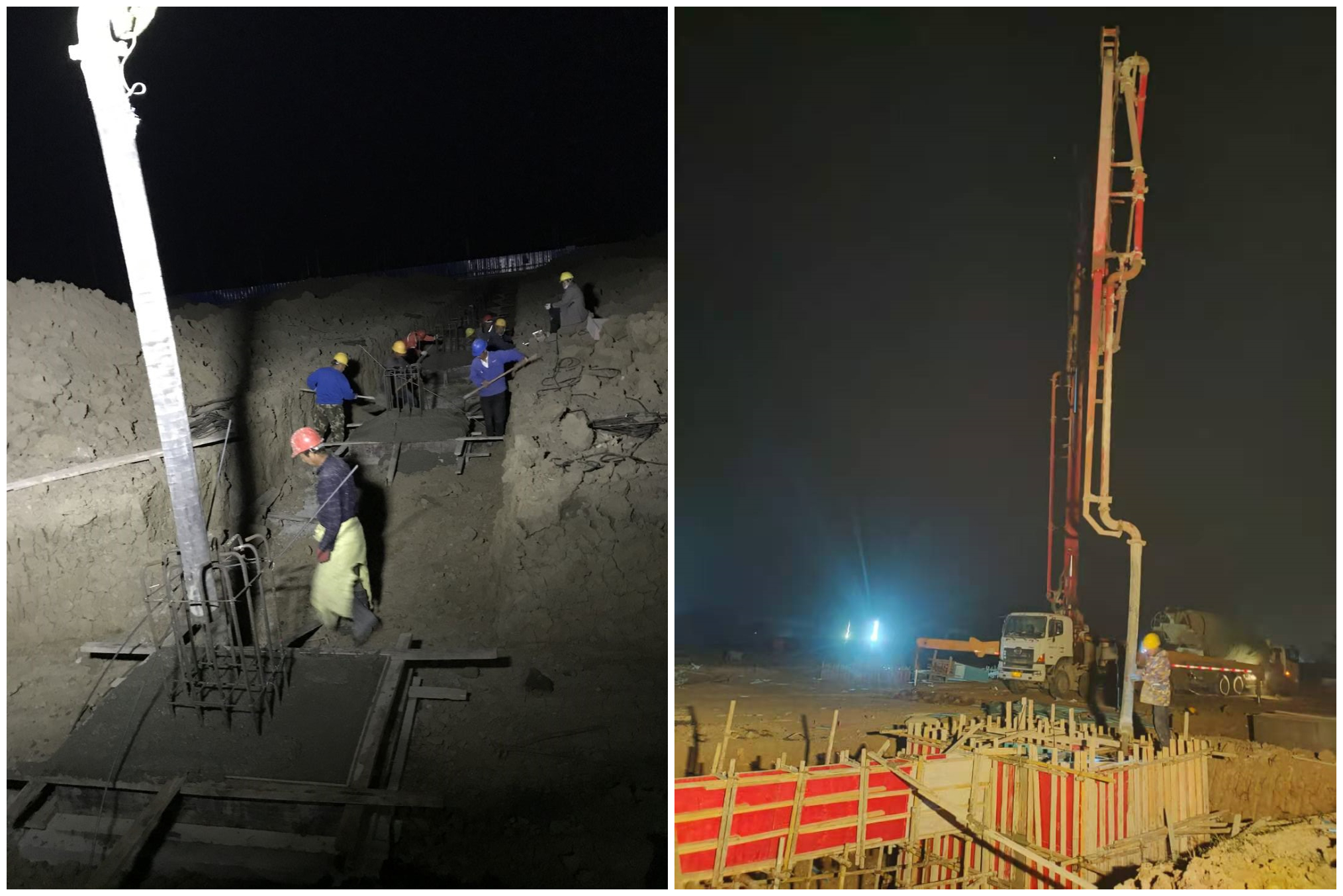 初冬以至,天氣漸寒,項(xiàng)目上卻是一片大干的火熱景象,放線測量、鋼筋焊接、承臺澆筑……所有施工機(jī)械滿負(fù)荷運(yùn)轉(zhuǎn),所有項(xiàng)目人員均在生產(chǎn)一線爭分奪秒。按照原施工計劃,臨港項(xiàng)目189個承臺的鋼筋捆扎焊接及三千余立方的混凝土澆筑應(yīng)在11月底完成,但晴雨表顯示11月下旬均為陰雨天,所以必須提前完成此項(xiàng)施工任務(wù)。時間緊、任務(wù)重,項(xiàng)目部立刻行動起來,及時調(diào)整施工及進(jìn)度方案,加大人力、物力的投入,全體員工主動放棄休息,不分晝夜、“5+2”“白+黑”,輪流堅守在施工現(xiàn)場。臨港的夜幕已經(jīng)緩緩降臨,但項(xiàng)目上仍然人頭攢動、身影忙碌,施工人員在黑夜的畫紙上勾勒出了一副“大干快上,只爭朝夕”的場景。