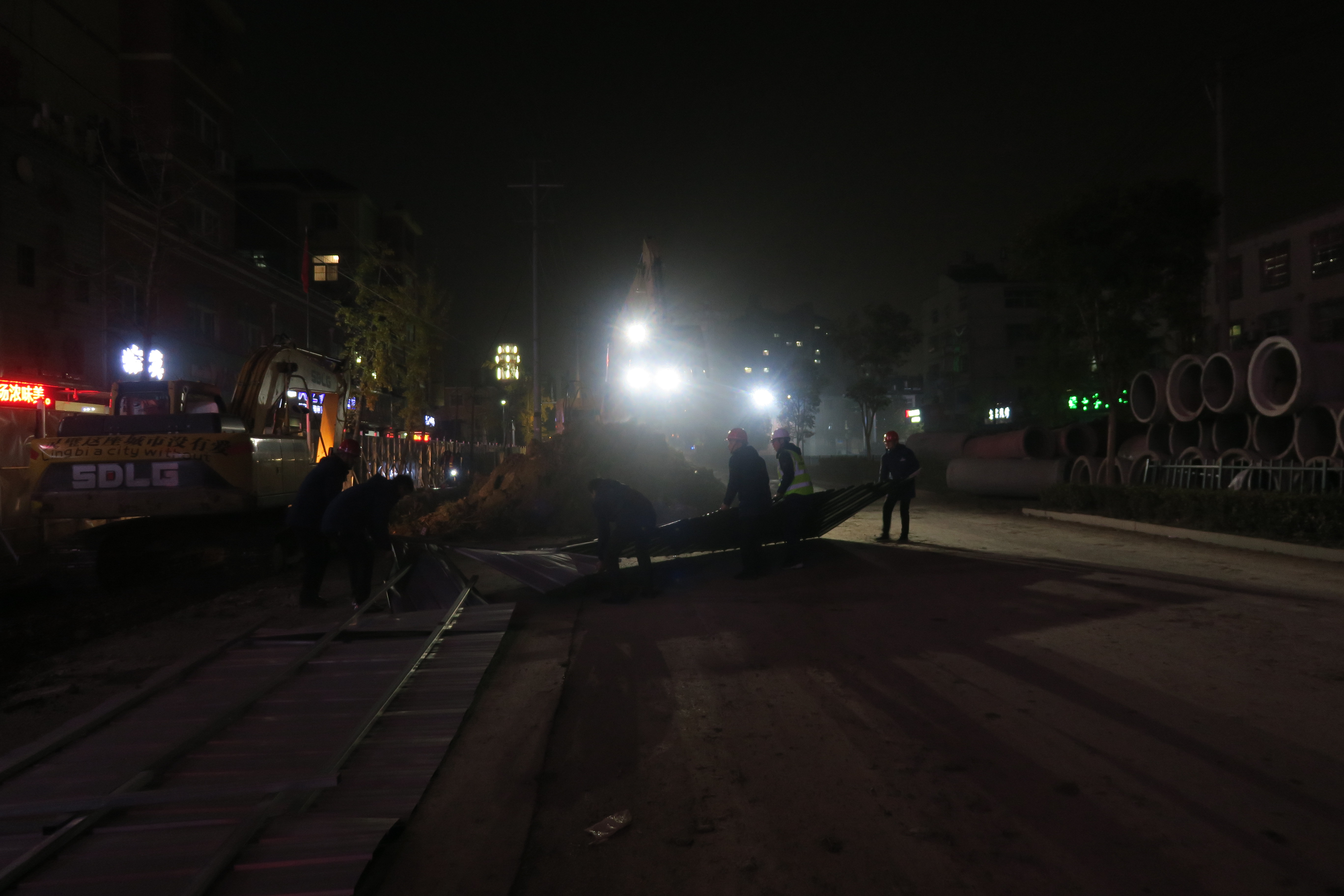 冬日的夜,愈深愈冷,北風(fēng)嗖嗖的刮過,讓人禁不住地打起寒顫。但在合肥分公司靈璧縣的迎賓大道上,深夜里的12點后,忙碌的工人們依舊沒有停歇;為了趕工期搶進度,他們披星戴月、無懼風(fēng)雨,他們挑燈夜戰(zhàn)、白黑連軸轉(zhuǎn),他們正在以時不我待的奮斗姿態(tài)向著2020年產(chǎn)值目標(biāo)進行最后的沖鋒。