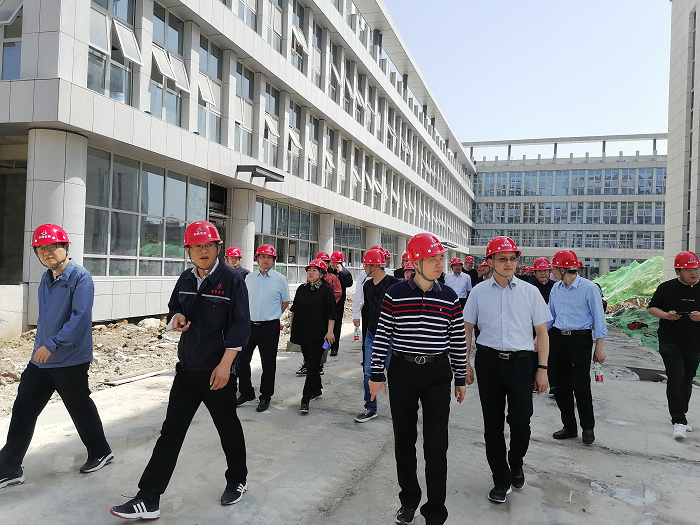 與會人員首先現場觀摩了阜陽市潁東中醫(yī)院項目,在項目經理徐明東的講解和帶領下,大家邊走邊看邊交流,詳細了解了項目實施情況、施工的重難點、進度管控措施。