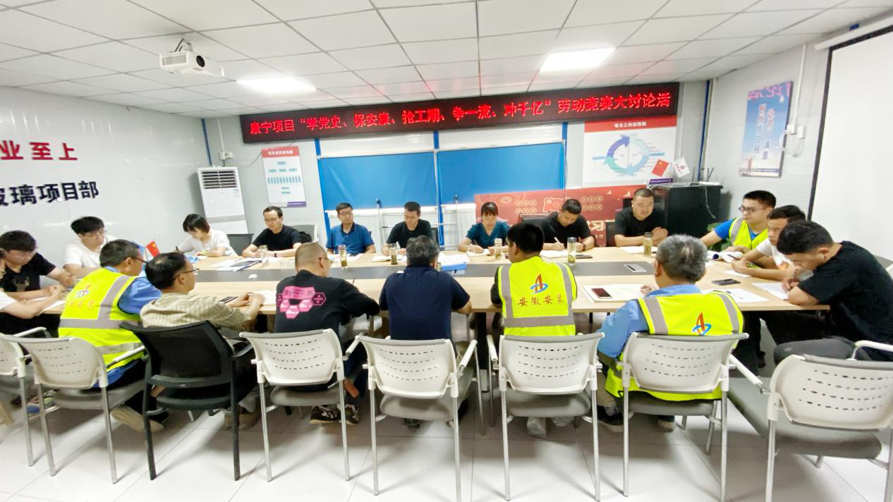 為貫徹落實(shí)集團(tuán)公司“學(xué)黨史、保安康、搶工期、爭(zhēng)一流、沖千億”主題勞動(dòng)競(jìng)賽活動(dòng)精神,6月29日上午,安徽安裝公司在蚌埠康寧項(xiàng)目部會(huì)議室開展“學(xué)黨史、保安康、搶工期、爭(zhēng)一流、沖千億,大干60天,確保完成節(jié)點(diǎn)目標(biāo)”的勞動(dòng)競(jìng)賽大討論活動(dòng)。公司副總經(jīng)理劉安俊,公司紀(jì)委書記、工會(huì)主席李寬旭,公司工程管理部經(jīng)理龍海健,蚌埠分公司領(lǐng)導(dǎo)班子成員,康寧項(xiàng)目部人員等30人參加了會(huì)議,會(huì)議由李寬旭主持。