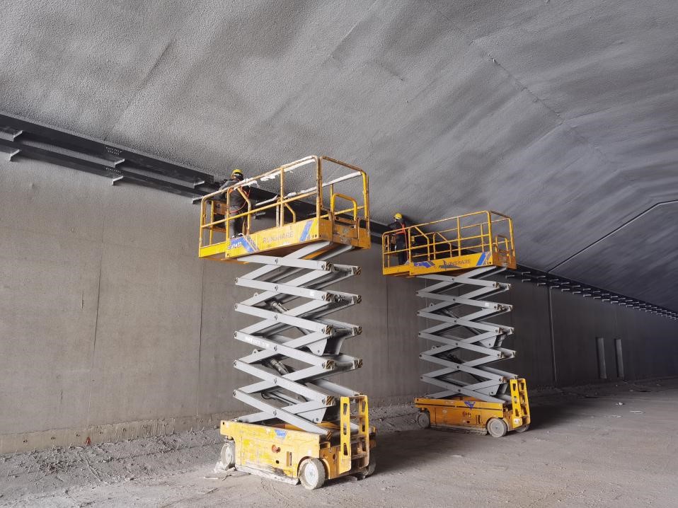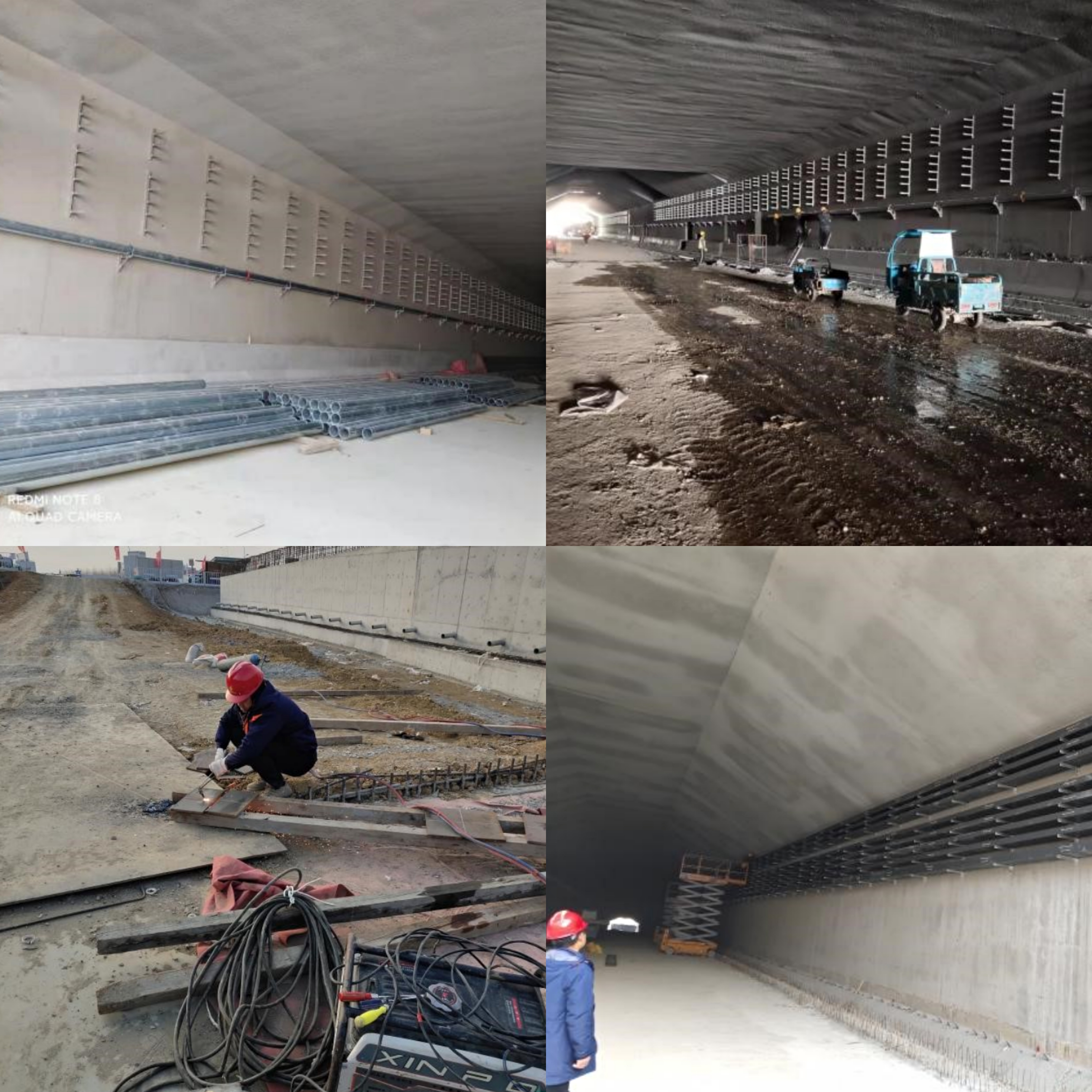 東側(cè)敞口段300多米是完成總包單位下達(dá)的“樣板段年前完工”目標(biāo)任務(wù)的重點(diǎn)實(shí)施地段,為了保證施工進(jìn)度,項目部管理人員靠前指揮,認(rèn)真分析,研判施工進(jìn)度,梳理現(xiàn)場存在的問題,共同探討解決的方案,針對隧道作業(yè)面有限,人員進(jìn)出不便等諸多困難,項目部采取“白加黑”“5+2”,勞務(wù)班組交替作業(yè)的方式,做到人休工地不停歇。項目施工員、安全員充分發(fā)揚(yáng)“釘子”精神,長時間釘在施工現(xiàn)場,旁站指導(dǎo)及監(jiān)督檢查,確保了鋼板切割、橋架支架的制作與安裝、橋架的安裝、消防管道的安裝等等,各項工作安全快速向前推進(jìn)。