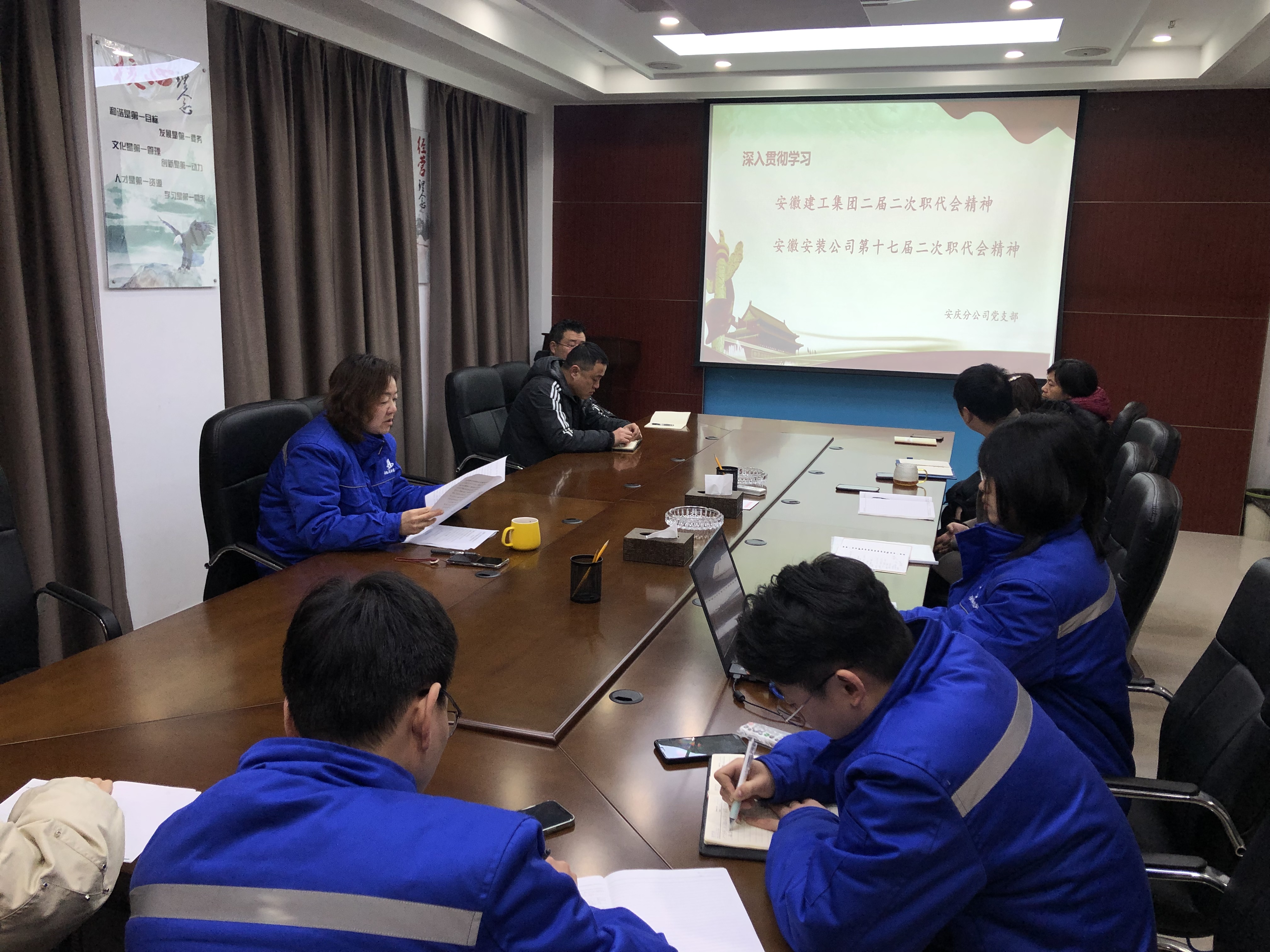 集團(tuán)公司、公司兩級職代會相繼召開之后,2月9日,安慶分公司結(jié)合實際,迅速在分公司機(jī)關(guān)和項目部分別組織召開了專題學(xué)習(xí)會,積極開展學(xué)習(xí)宣貫兩級職代會精神。會議由分公司黨支部書記劉紅艷主持。