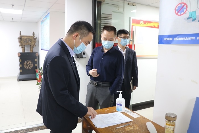 黃代實地督查了安徽安裝機關(guān)辦公場所和合肥分公司,通過現(xiàn)場查看、查閱臺賬資料等方式,重點督查“兩碼”應(yīng)用、測溫、人員進出登記、防疫物資發(fā)放和儲備等疫情防控措施落實情況。