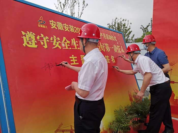 在全國第21個“安全生產(chǎn)月”活動到來之際,5月30日上午,安徽安裝公司2022年“安全生產(chǎn)月”啟動儀式在年配套1000萬臺新能源汽車及年產(chǎn)2億臺制冷空調(diào)壓縮機(jī)關(guān)鍵性能件制造基地項目舉行。公司黨委書記、董事長胡六中,紀(jì)委書記、工會主席李楊,副總經(jīng)理趙伯平,總工程師吳繼成及機(jī)關(guān)各部門、各分公司代表參加了本次活動。