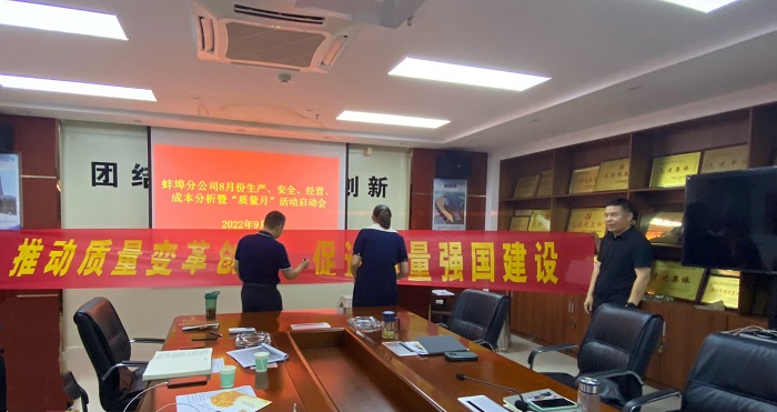 9月1日下午,蚌埠分公司召開8月份生產(chǎn)、安全、經(jīng)營、成本分析暨“質(zhì)量月”活動啟動會,分公司領導班子成員、部門負責人及各項目經(jīng)理等參會。