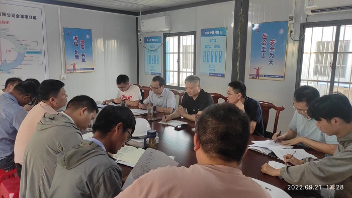 9月21日下午,公司總工程師吳繼成一行赴蚌埠分公司霍邱縣金巢礦業(yè)有限責(zé)任公司選鐵選云母技改工程項目開展三季度聯(lián)合檢查。公司總工辦、工程管理部、安全管理部、成本合約部等部門負責(zé)人聯(lián)合檢查,蚌埠分公司黨支部書記、副經(jīng)理王偉,副經(jīng)理張斌、郭洋及項目部全體職工參加。