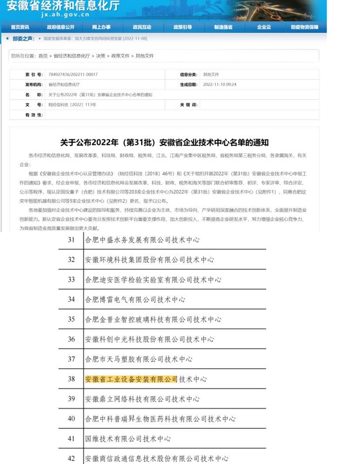 近期,經(jīng)企業(yè)申報(bào),各市經(jīng)濟(jì)和信息化局、發(fā)展改革委、科技局、財(cái)政局、稅務(wù)局和海關(guān)等部門聯(lián)合初審?fù)扑]、初評、專家評審、綜合評定、公示等程序,安徽省工業(yè)設(shè)備安裝有限公司技術(shù)中心順利通過“安徽省省級企業(yè)技術(shù)中心”認(rèn)定。