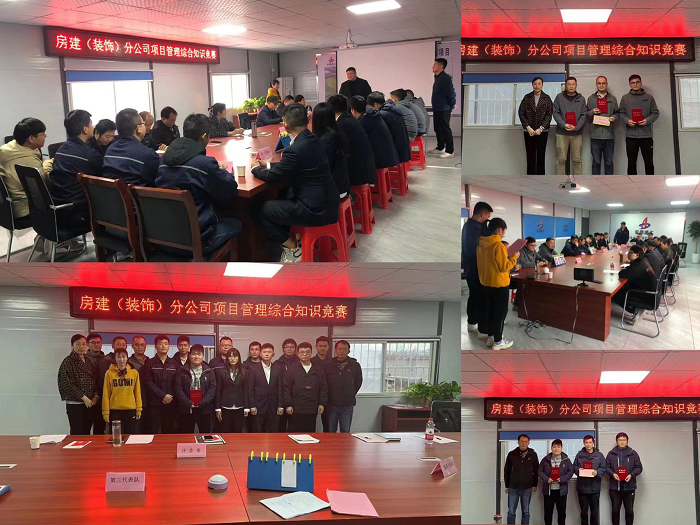 為貫徹落實(shí)公司“項(xiàng)目管理年”活動(dòng)要求,提升房建(裝飾)分公司整體項(xiàng)目管理水平,11月23日下午,房建(裝飾)分公司在阜南污水廠項(xiàng)目舉辦了以“遵筑質(zhì)量安全大堤,樹(shù)安徽安裝新風(fēng)”為主題的項(xiàng)目管理綜合知識(shí)競(jìng)賽活動(dòng)。