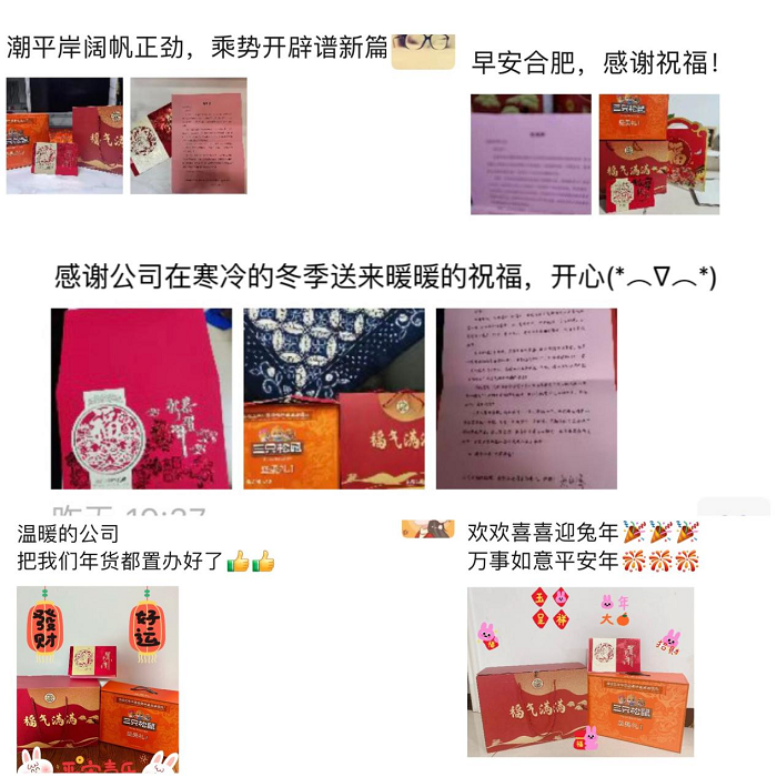 為了表達(dá)對分公司全體員工一年來辛勤工作的感謝之情和最誠摯的新春問候,分公司從細(xì)節(jié)著手,從點滴做起,通過新春送溫暖活動,傳遞對廣大員工的關(guān)心和慰問。春節(jié)前,分公司特別為大家送去了飽含深情的《感謝信》和新年大禮包,將美好的祝福送到了每位員工的心坎里。同時還為新入職員工送去了《歡迎辭》,表達(dá)了分公司求賢若渴的殷殷期待,并希望他們能立足崗位,踏實工作,為企業(yè)高質(zhì)量發(fā)展奉獻(xiàn)青春和力量,書寫屬于自己的絢麗華章。