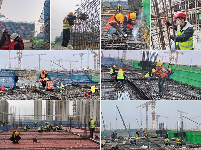 為搶抓新春早開局,連日來,分公司各項目建設(shè)工地已是一片繁忙,工人們忙碌的身影隨處可見,一派火熱的建設(shè)景象。在安徽安裝合肥分公司新橋國際機場T2航站樓南北指廊機電安裝工程項目工地,現(xiàn)場一線工人正在進行預留套管制作、安裝及防雷接地焊接工作,管理人員緊盯全場,對柔性防水套管預埋等已完成的工作進行驗收,全體參建者忙碌穿梭、開足馬力,以時不我待、只爭朝夕的干勁奮戰(zhàn)一線,抓緊時間確保施工進度,正按照節(jié)點工期目標穩(wěn)步推進。