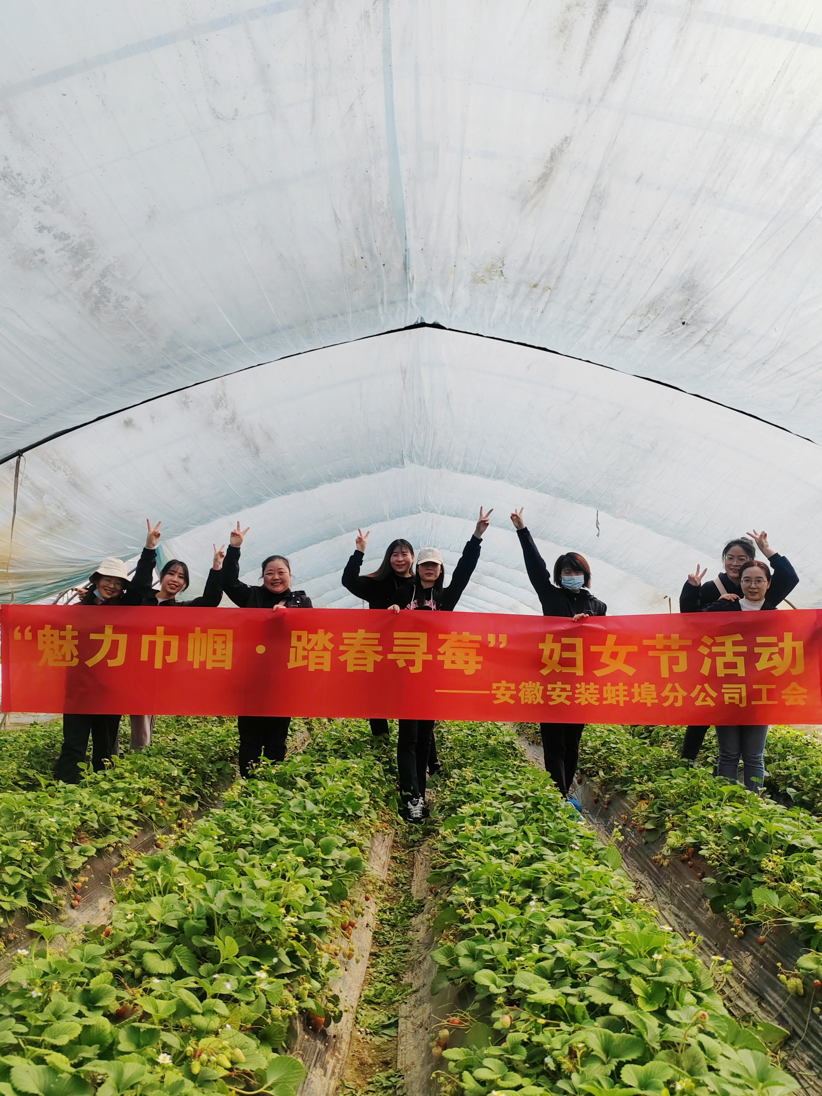節(jié)日當天,在明媚的春光中,分公司全體女職工乘車來到草莓采摘基地。剛進園區(qū),一陣甜蜜的草莓香撲面襲來,一簇簇綠葉托著紅色的果實,像一個個小燈籠,看著鮮美誘人的草莓,大家按捺不住興奮的心情,一邊采摘一邊拍照,體會這親近自然的樂趣,沉浸在勞動的快樂和收獲的喜悅之中,不一會兒,籃子里已是碩果累累,大家臉上都洋溢著燦爛的笑容。