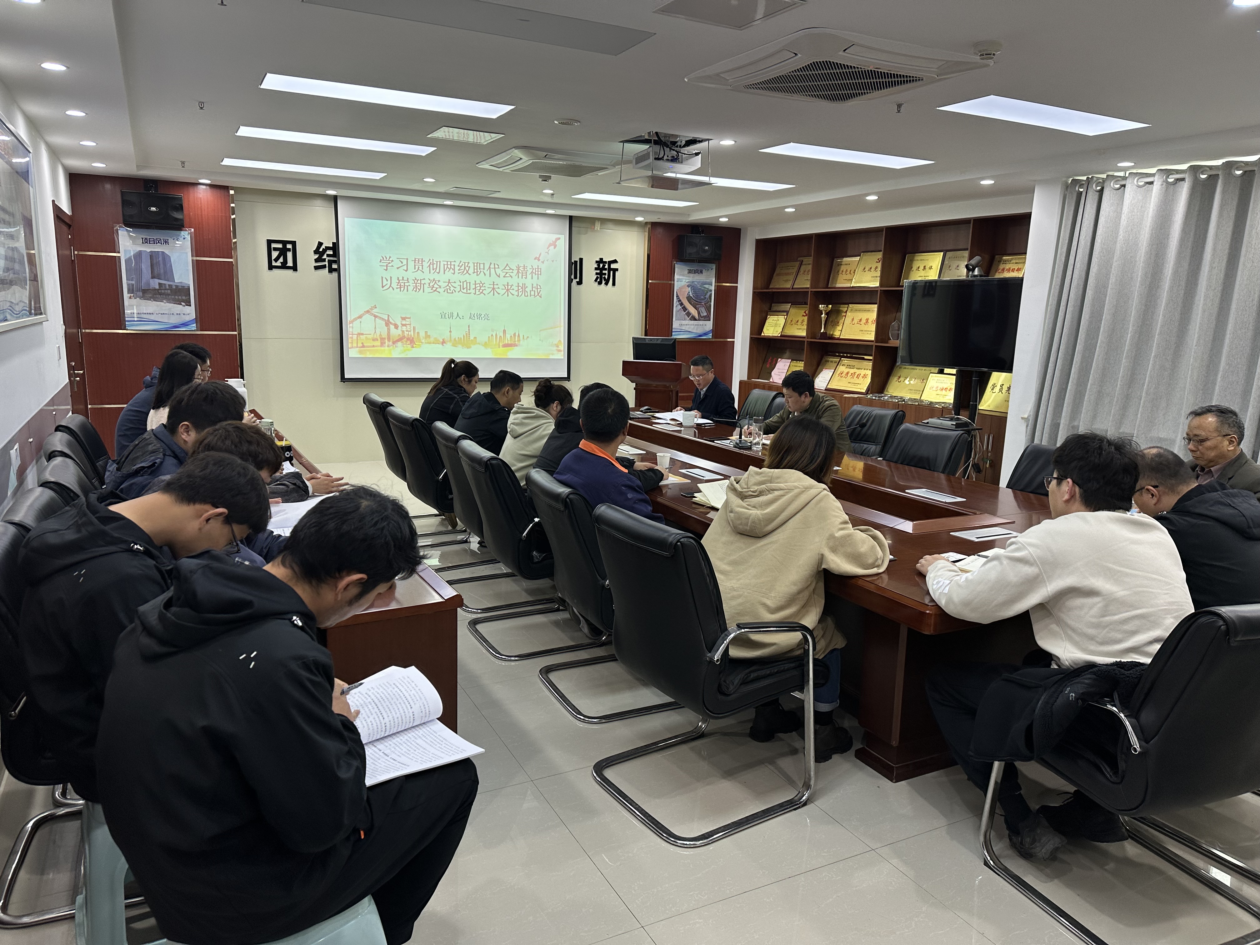 會(huì)上,趙銘亮首先強(qiáng)調(diào)了學(xué)習(xí)貫徹落實(shí)兩級(jí)職代會(huì)精神的重要意義,指出將學(xué)習(xí)融入工作當(dāng)中,要求領(lǐng)導(dǎo)帶頭學(xué),帶領(lǐng)項(xiàng)目團(tuán)隊(duì)學(xué),將職代會(huì)精神切實(shí)傳達(dá)落實(shí)到項(xiàng)目一線,掀起學(xué)習(xí)職代會(huì)精神的熱潮。隨后,趙銘亮傳達(dá)學(xué)習(xí)了建工控股黨委書記、董事長(zhǎng)楊善斌作的題為《全面貫徹落實(shí)黨的二十大精神,改革創(chuàng)新、勇毅前行,爭(zhēng)當(dāng)中國(guó)建筑企業(yè)排頭兵》的講話和黨委副書記、總經(jīng)理、董事劉家靜作的題為《拉高標(biāo)桿、踔厲奮發(fā)、改革創(chuàng)新、提質(zhì)增效,為爭(zhēng)當(dāng)中國(guó)建筑企業(yè)排頭兵而團(tuán)結(jié)奮斗》的工作報(bào)告;深入解讀了公司黨委書記、董事長(zhǎng)胡六中作的題為《初心如磐踔厲奮發(fā)行而不輟未來可期以實(shí)干作風(fēng)按下安徽安裝高質(zhì)量發(fā)展“加速鍵”》工作報(bào)告和題為《深入學(xué)習(xí)貫徹黨的二十大精神為安徽安裝高質(zhì)量發(fā)展新征程領(lǐng)航掌舵》的講話,并對(duì)“做強(qiáng)做優(yōu)做大”“一以貫之五做到”“踔厲奮發(fā)五提升”等進(jìn)行了深入解釋和闡述,帶領(lǐng)大家了解了集團(tuán)公司以及公司的發(fā)展形勢(shì)和重點(diǎn)工作,明確了發(fā)展方向,理清了2023年工作思路。