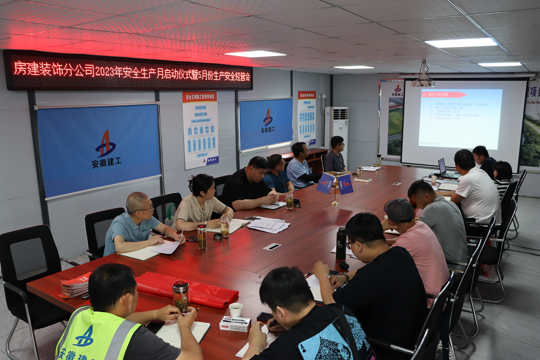 5月31日上午,房建(裝飾)分公司在阜南污水廠項(xiàng)目會(huì)議室召開5月份生產(chǎn)安全經(jīng)營(yíng)會(huì)。分公司領(lǐng)導(dǎo)班子成員、各部門負(fù)責(zé)人、項(xiàng)目經(jīng)理及項(xiàng)目員工共20余人參加會(huì)議。會(huì)議由分公司副經(jīng)理王岳濤主持。