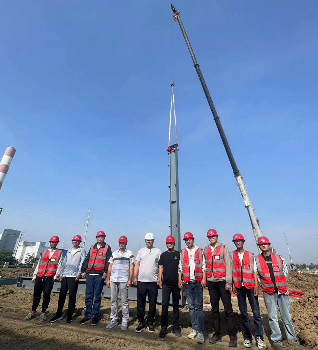 丙類車間鋼架順利開吊是該工程一個重要里程碑節(jié)點。為確保進展順利,吊裝前,項目部組織專業(yè)人員對吊裝方案、安全措施、質量標準、起吊機械等進行詳細審查,開展現場土建交付安裝前的條件確認,項目經理現場指揮,安全管理人員全程監(jiān)控,保證鋼結構吊裝能夠高標準開吊,為后續(xù)安裝工作奠定堅實基礎。