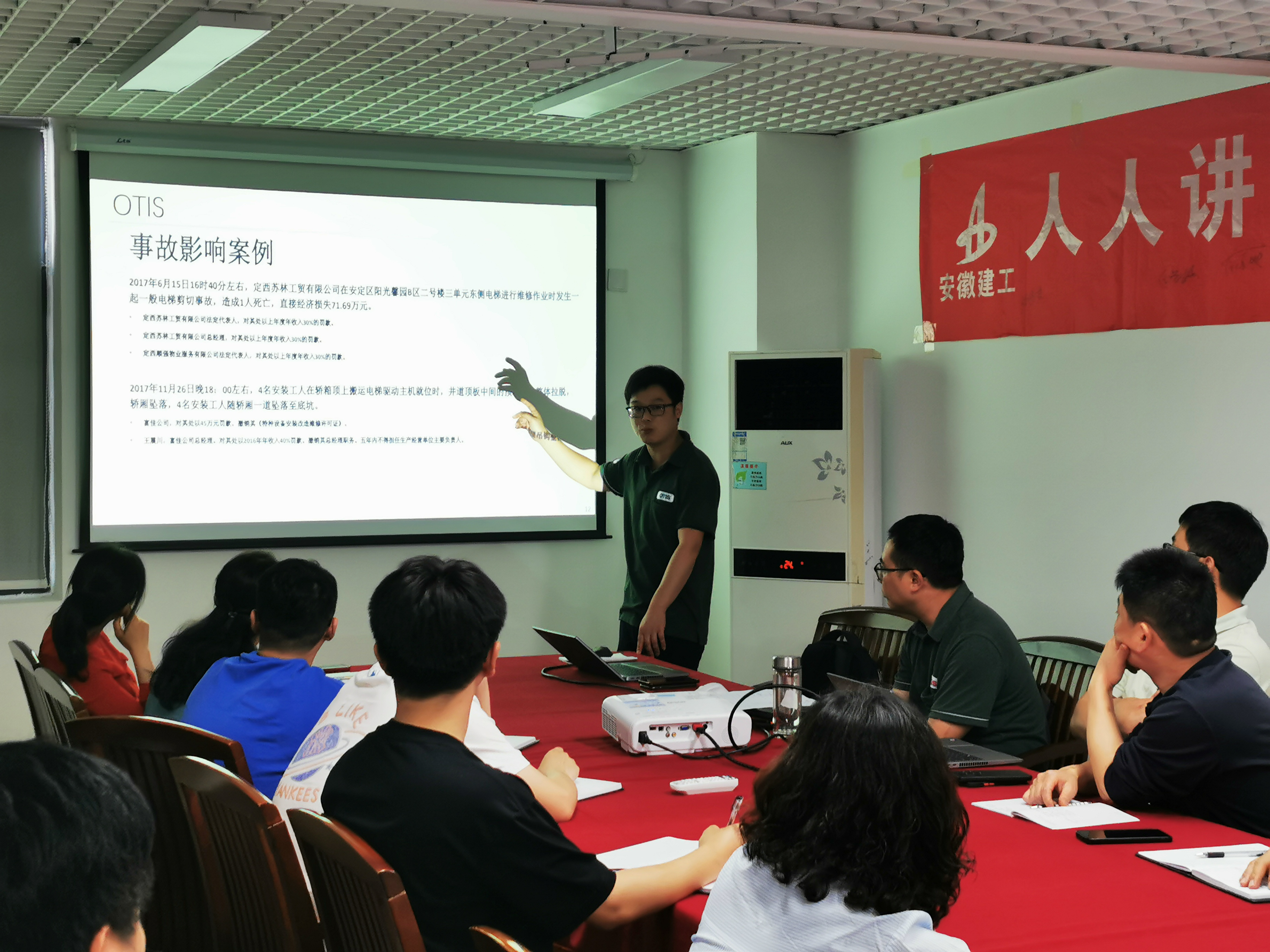 培訓由奧的斯電梯(中國)有限公司安徽分公司安全工程師徐長江、項目經(jīng)理張文翔及調試工程師王威為大家授課。三位授課老師結合多年從事電梯行業(yè)的經(jīng)驗,從安全管理責任、安全教育培訓、安全事故案例分析、電梯安裝調試中易錯點及電梯安裝行業(yè)容易導致重傷及死亡事故的原因等方面全面、系統(tǒng)地講解了電梯施工現(xiàn)場容易出現(xiàn)的各類安全隱患,深度剖析了隱患可能引發(fā)的各類安全事故,各種事故隱患的防護措施及在發(fā)生緊急情況時如何做好事故處理等。