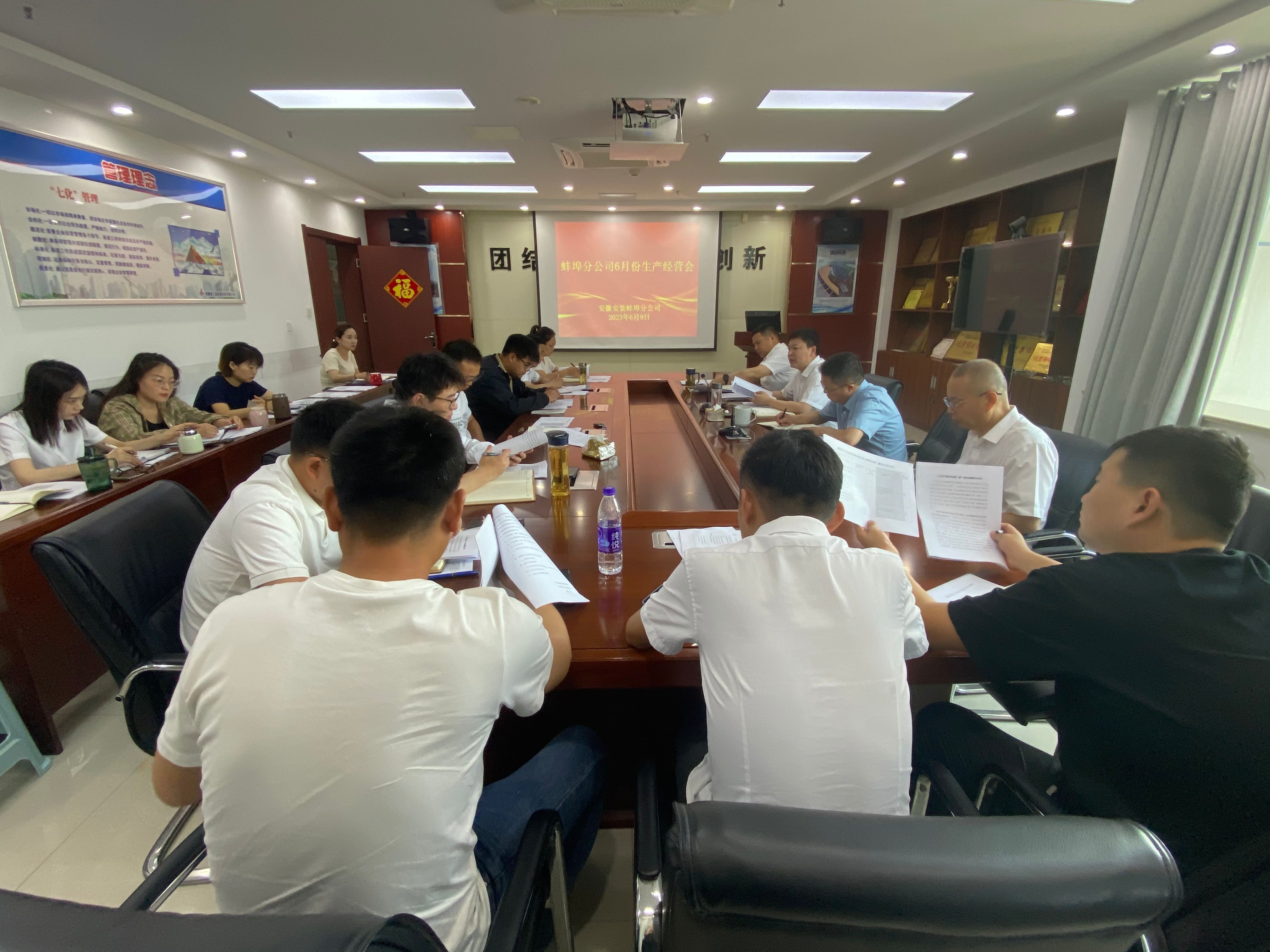6月9日上午,蚌埠分公司組織召開6月份生產(chǎn)經(jīng)營會,分公司領(lǐng)導(dǎo)班子成員、所屬各項目部、機(jī)關(guān)各部門負(fù)責(zé)人及工程管理部全體員工參加會議,會議由分公司副經(jīng)理郭洋主持。