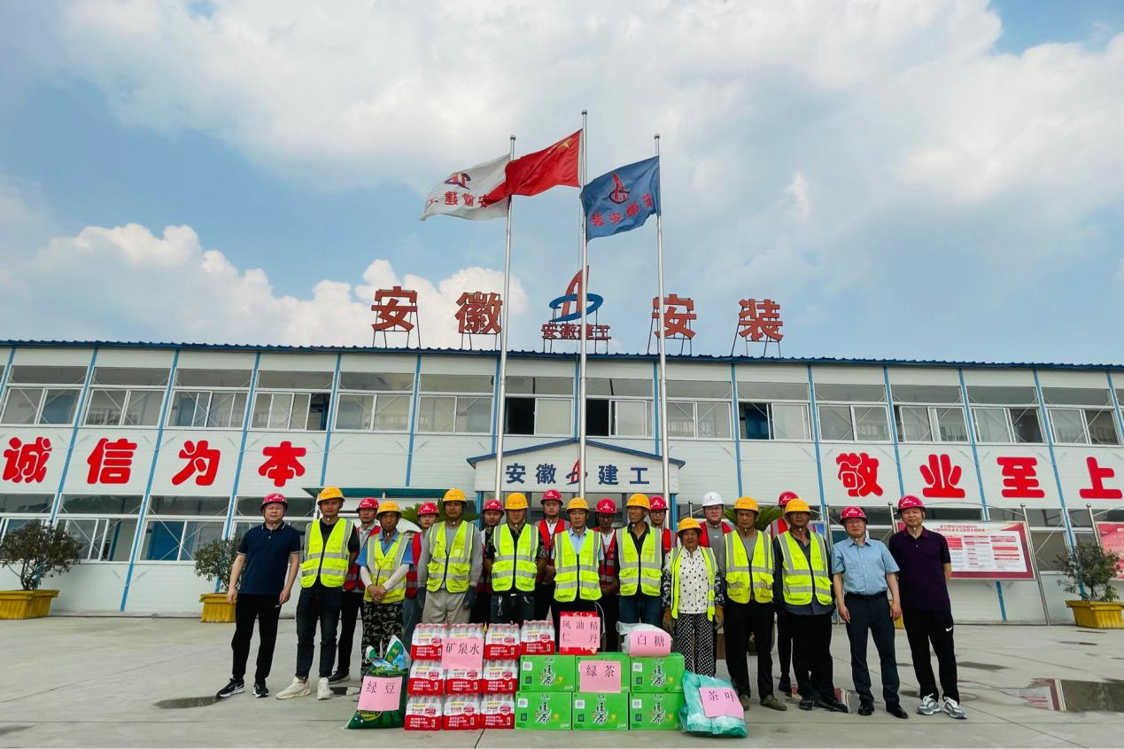 近日高溫來襲,為做好夏季高溫作業(yè)勞動保護工作,6月13日下午,蚌埠分公司經理、黨支部副書記趙銘亮,黨支部書記、副經理王偉,副經理趙榮珣前往輝隆項目部開展送清涼慰問活動,為項目部管理人員和工人們免費發(fā)放防暑降溫清涼物資。