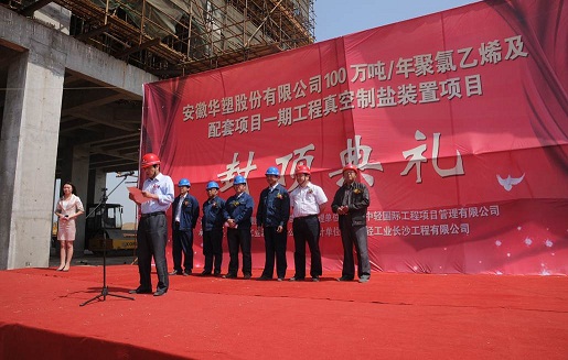 2011年4月28日,安徽省工業(yè)設(shè)備安裝公司滁州分公司承建的安徽華塑項(xiàng)目工程施工現(xiàn)場(chǎng),到處場(chǎng)洋溢著一片祥和、喜慶的氣氛。上午10:18分,迎來了安徽華塑真空制鹽鹽硝車間土建主體結(jié)構(gòu)封頂儀式。公司總經(jīng)理王軍幫、副總經(jīng)理劉安俊,華塑公司黨委書記黃家發(fā)、 副總經(jīng)理梁東風(fēng),北京中輕國(guó)際工程管理有限公司現(xiàn)場(chǎng)總監(jiān)郭均川等領(lǐng)導(dǎo)應(yīng)邀出席了封頂儀式。本工程從開工到土建主體結(jié)構(gòu)封頂,在質(zhì)量、安全、進(jìn)度等方面受到了業(yè)主和監(jiān)理單位的一致好評(píng),并獲得華塑園區(qū)二十多家施工單位綜合評(píng)比第二名得好成績(jī)。真空制鹽主體結(jié)構(gòu)施工進(jìn)度上創(chuàng)造了全國(guó)最短時(shí)間,為公司在今后進(jìn)一步占領(lǐng)鹽化工程市場(chǎng)打下了堅(jiān)實(shí)的基礎(chǔ)。