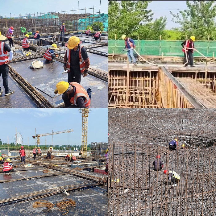 面對工期緊、任務重、壓力大,現(xiàn)場困難重重的實際情況,項目部多次召開專題會議,統(tǒng)一思想,倒排施工計劃,并積極開展勞動競賽。為確保競賽目標實現(xiàn),項目部領(lǐng)導班子實行分工包保制,堅持靠前指揮,嚴控各個施工節(jié)點,同時,項目經(jīng)理對項目部成員也做了精細化分工調(diào)整,劃分區(qū)域、責任到人;對施工班組一條龍服務,一站式解決。針對重難點問題做到急速反饋、急速解決,及時處理現(xiàn)場各類問題,確保“各司其責、高效快捷、風險可控”。在搶抓工程進度的同時,項目部還嚴抓現(xiàn)場安全質(zhì)量管理。在常態(tài)化做好日常工作同時,相繼開展了安全警示教育、觸電事故安全演練、砌筑、抹灰技能大賽等活動,并積極申報QC成果,其中《提高池壁與筏板連接處混凝土一次性成型率》QC榮獲省級二等獎,多措并舉加快推進了項目建設。