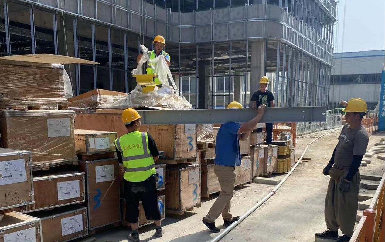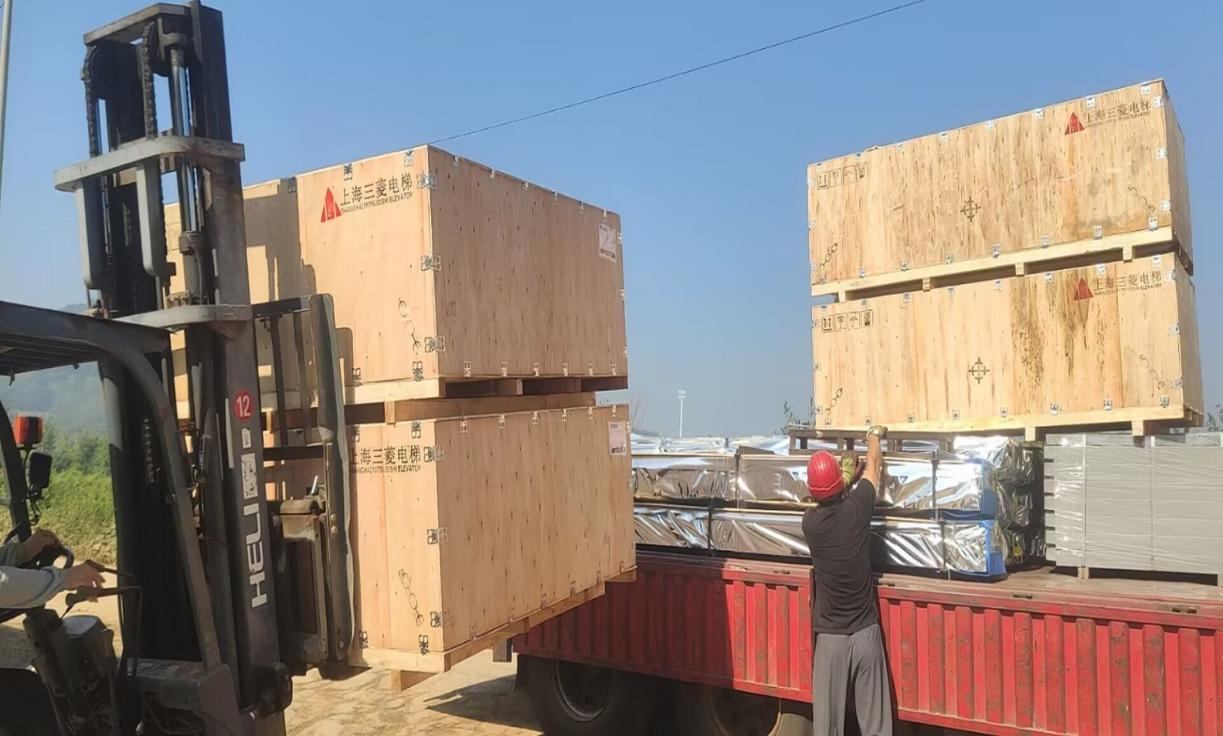 天長(zhǎng)市安徽恒大湖山半島電梯安裝工程項(xiàng)目正在卸貨